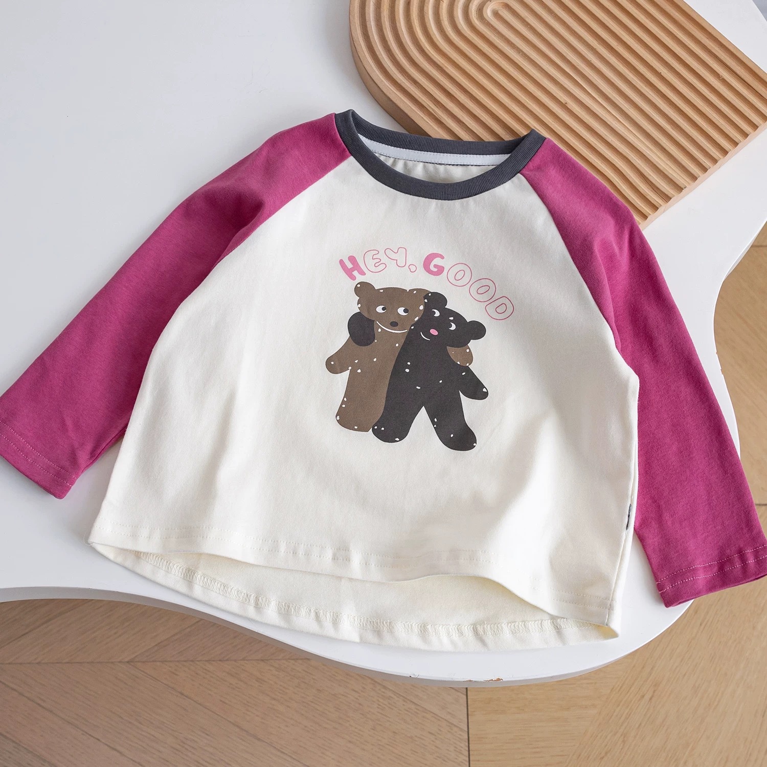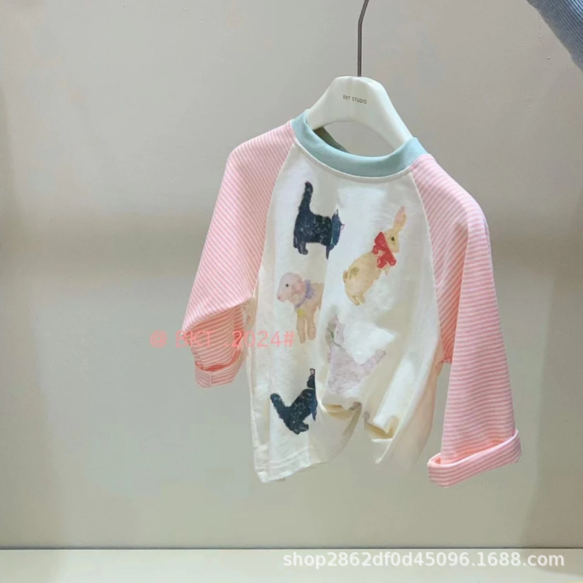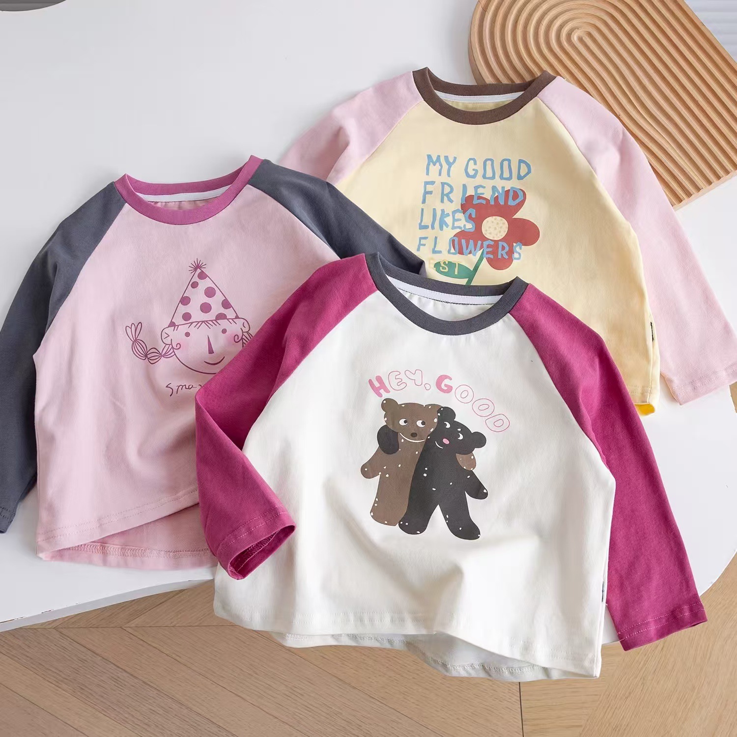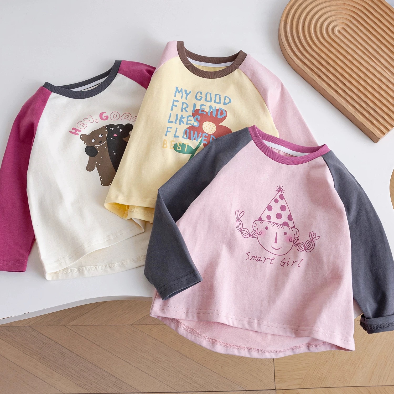 [순수한 면] 새로운 25 여아 라글란 소매 긴 소매 티셔츠 여성의 인쇄 서양식 봄과 가을 새 아기 탑스토어 가기