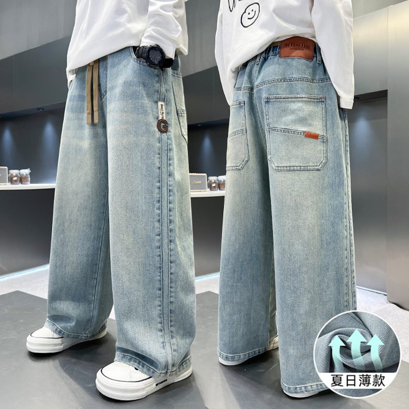남아 스트레이트 데님 팬츠 봄 가을 루즈핏 2026 중대형 아동 캐주얼 한국 스타일 긴바지 아동 바지 봄 모델 도매스토어 가기
