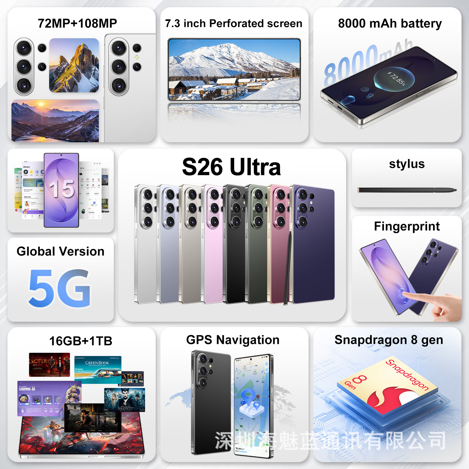 인기 판매 상품 2026년형 크로스보더 휴대폰 S26 Ultra 16+1TB 펀치홀 디자인 7.3inch 대외 무역 스마트폰 모든 네트워크 지원