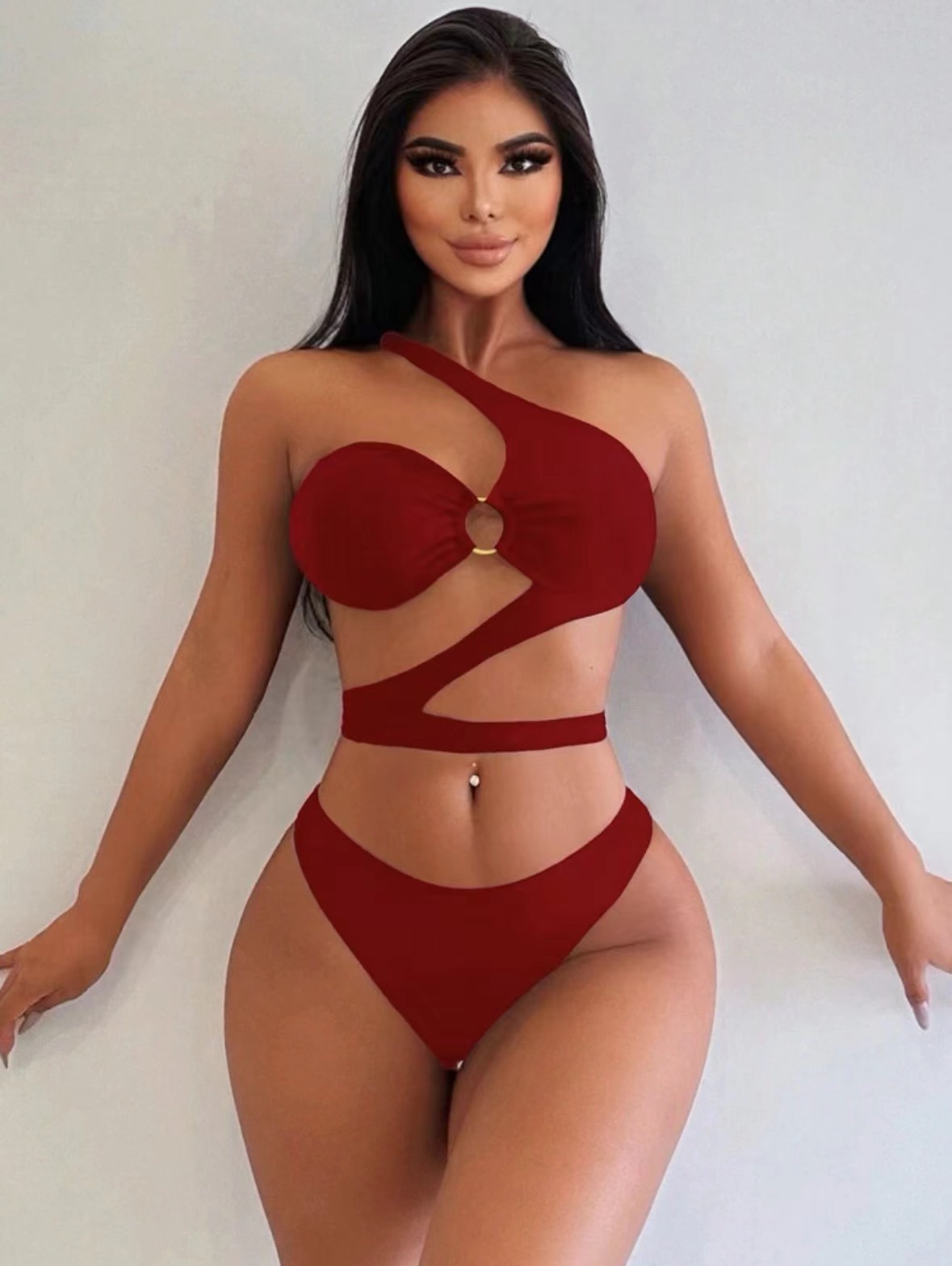 재고 2025 유럽과 미국의 새로운 섹시한 중공 단색 원피스 수영복 비키니 크로스 보더 독점스토어 가기