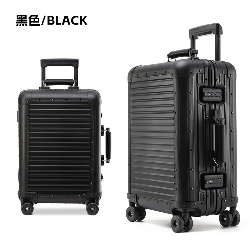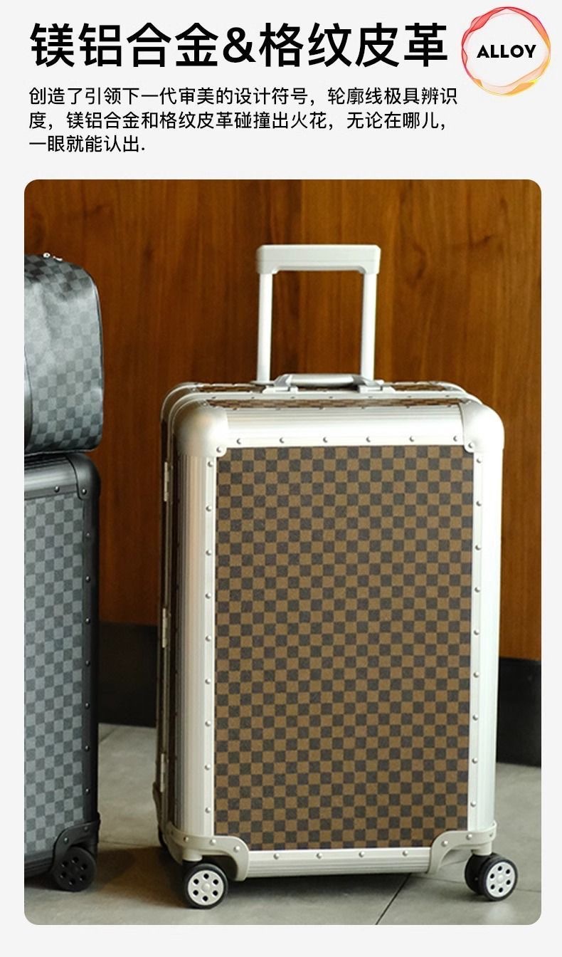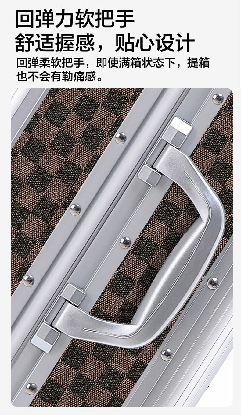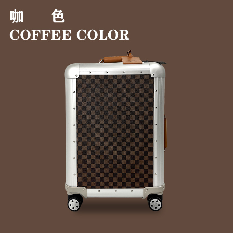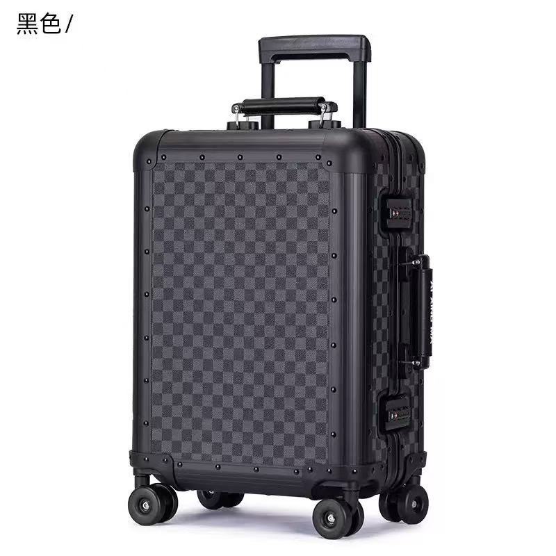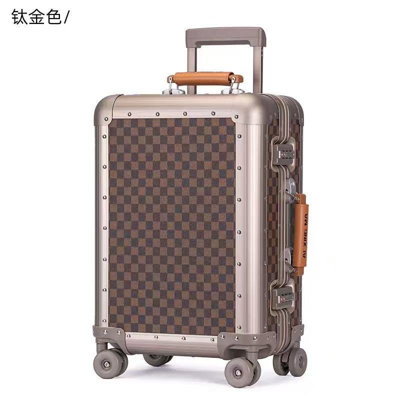 클래식 고급 가죽 알루미늄-마그네슘 합금 트롤리 캐리어 20inch 기내용 캐리어 26인치 수하물 캐리어 저소음 회전 바퀴 경량스토어 가기