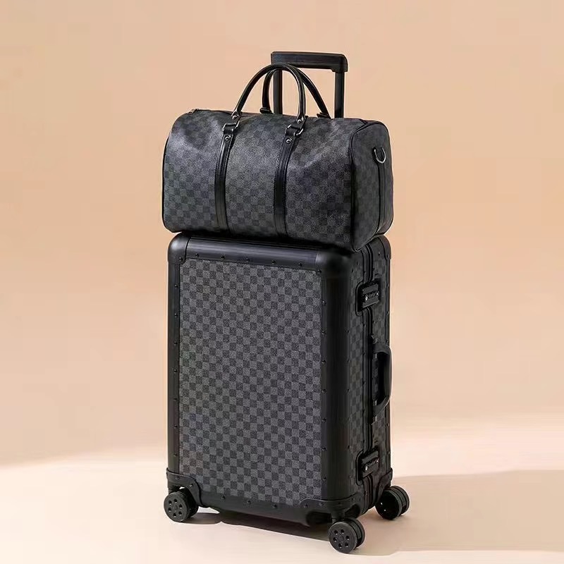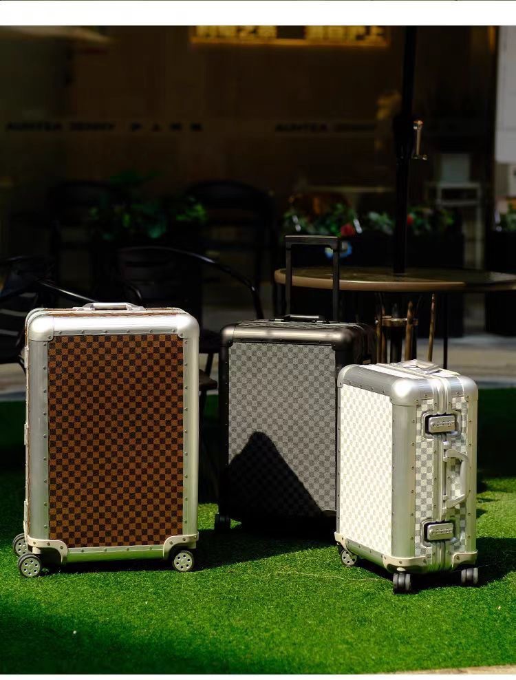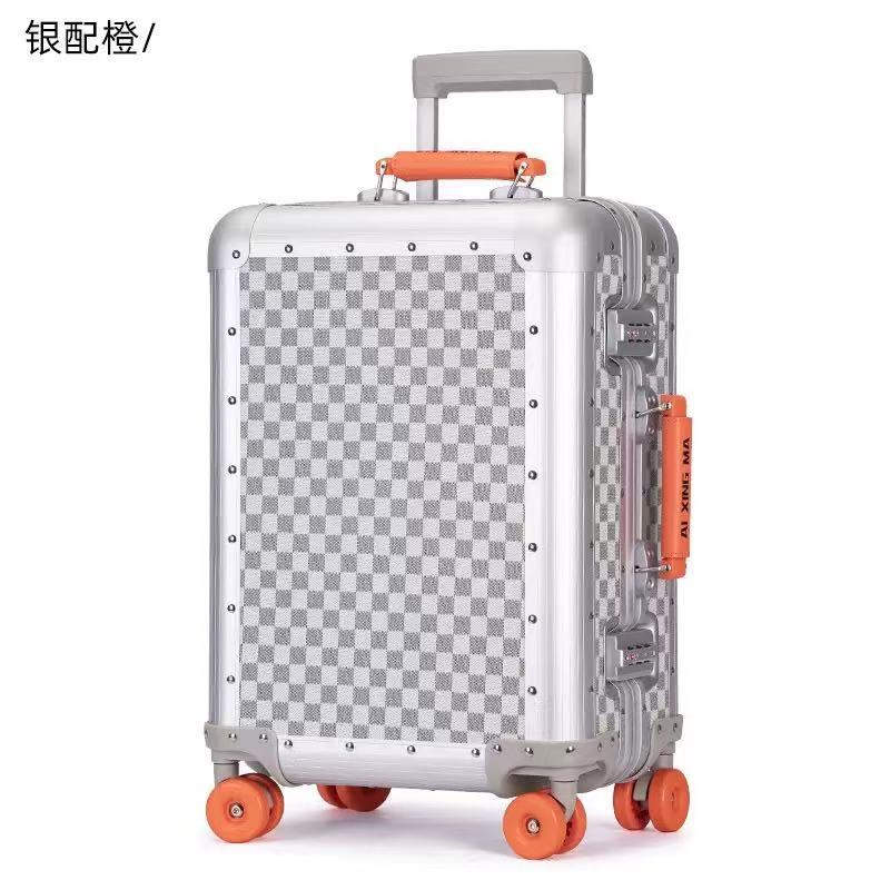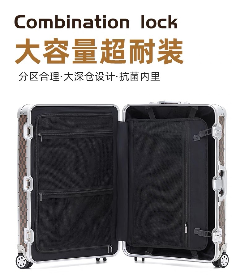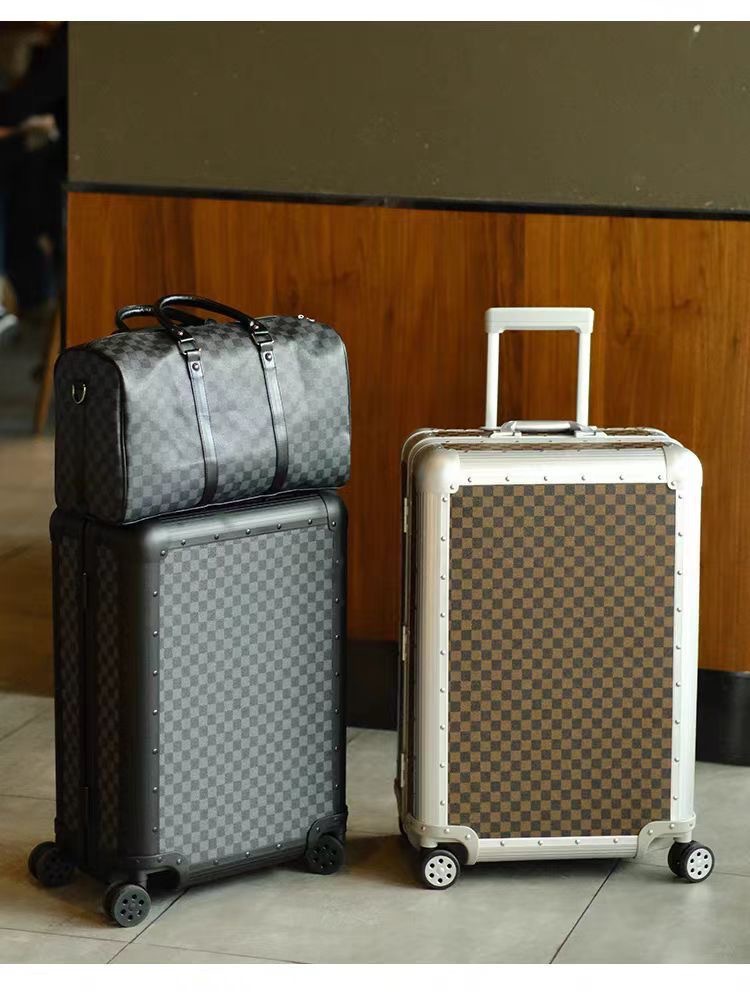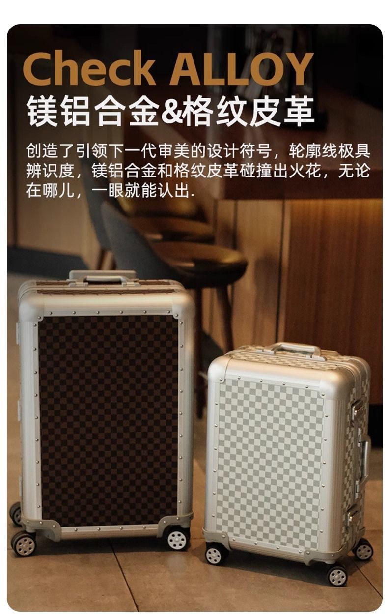클래식 고급 가죽 알루미늄-마그네슘 합금 트롤리 캐리어 20inch 기내용 캐리어 26인치 수하물 캐리어 저소음 회전 바퀴 경량스토어 가기