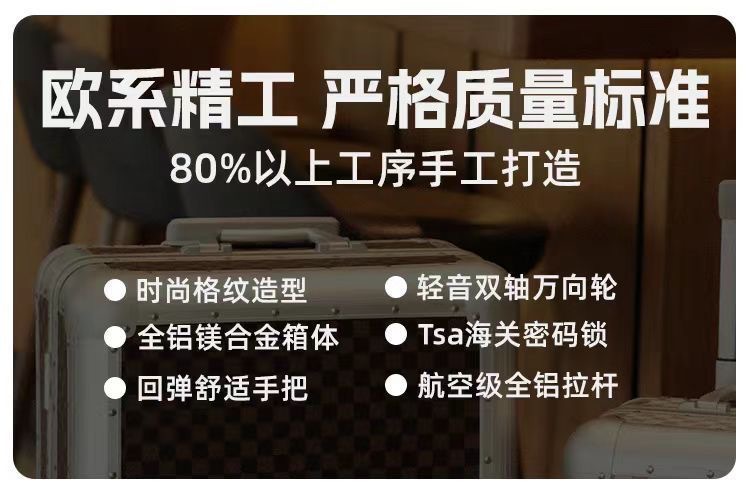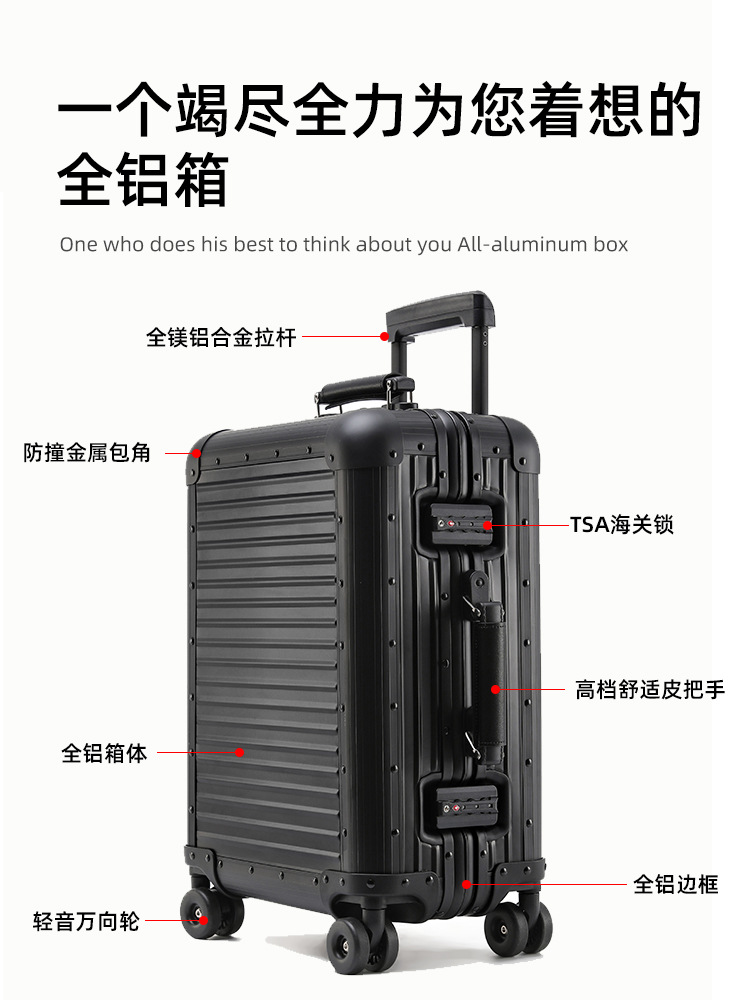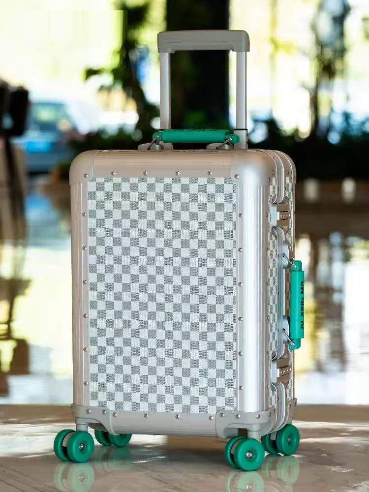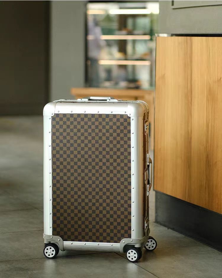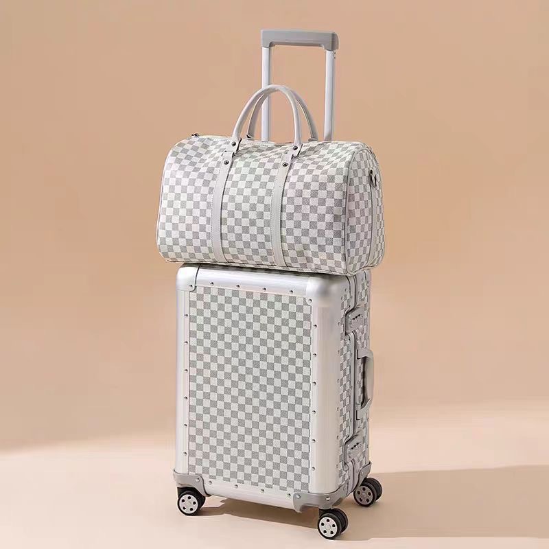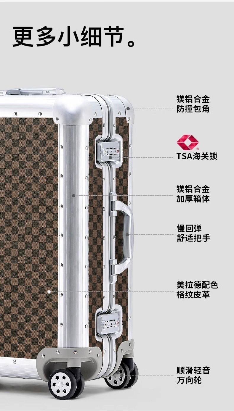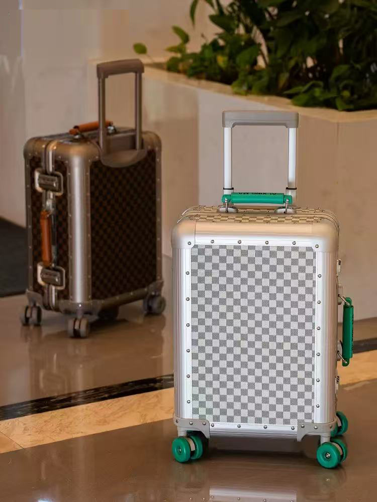 클래식 고급 가죽 알루미늄-마그네슘 합금 트롤리 캐리어 20inch 기내용 캐리어 26인치 수하물 캐리어 저소음 회전 바퀴 경량스토어 가기
