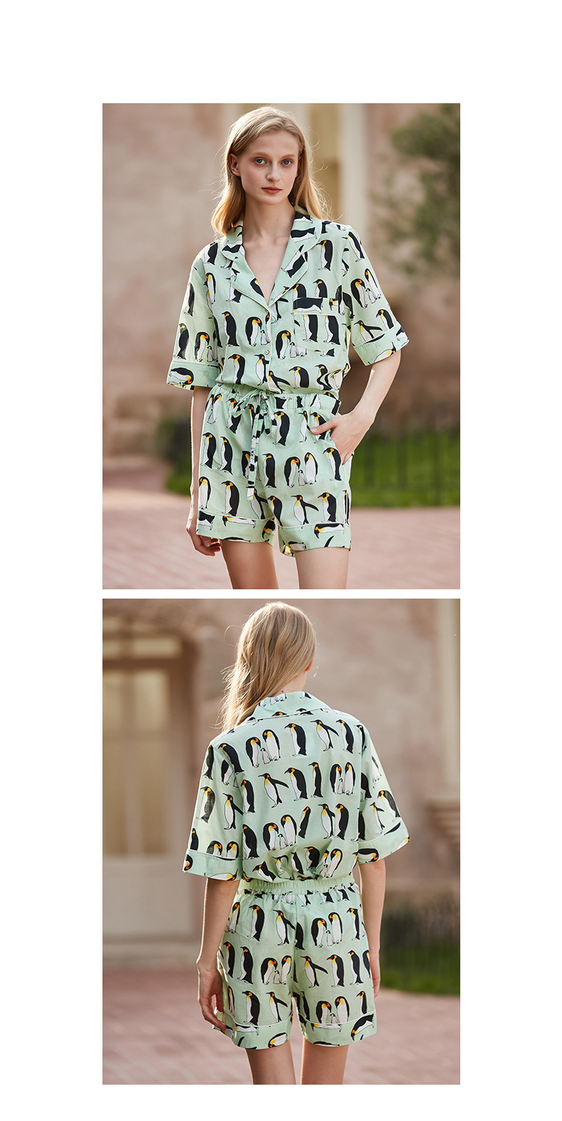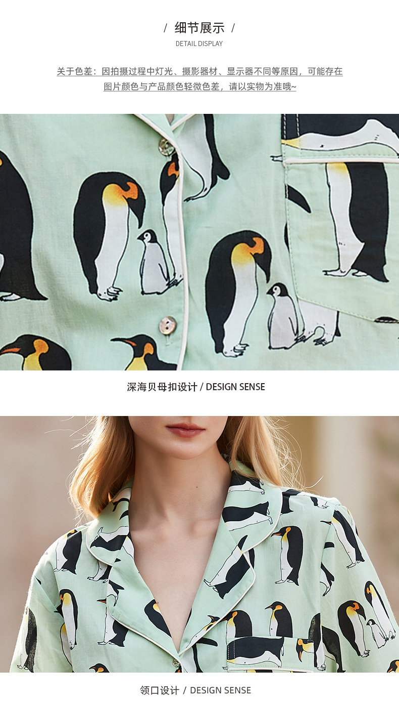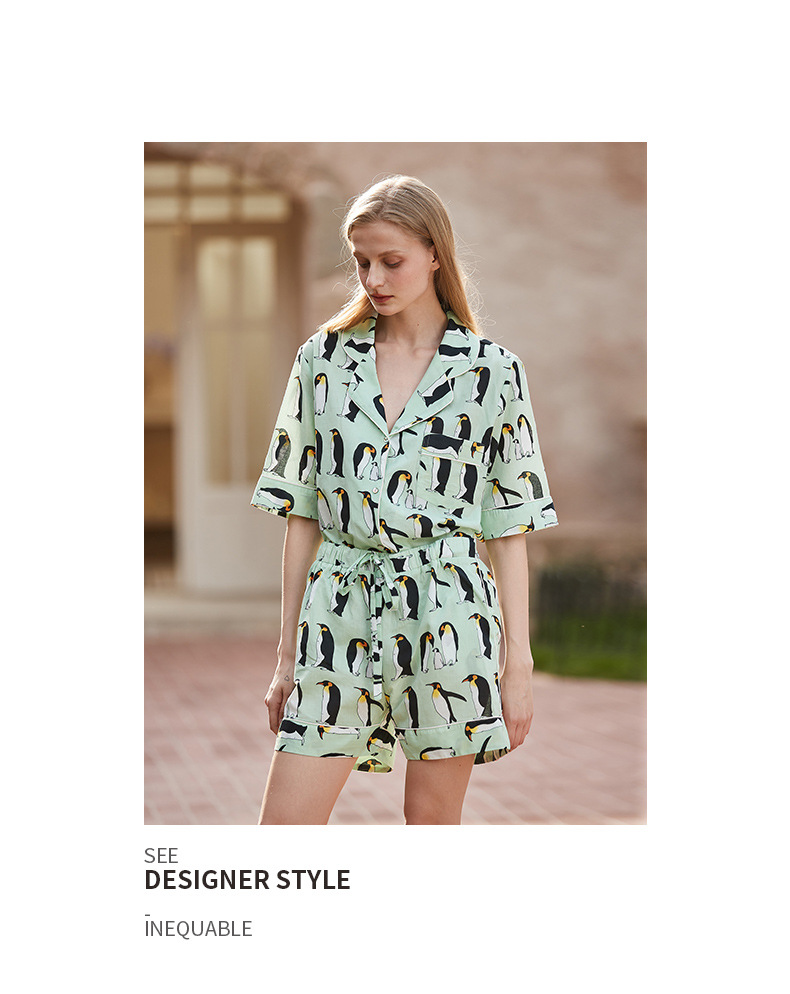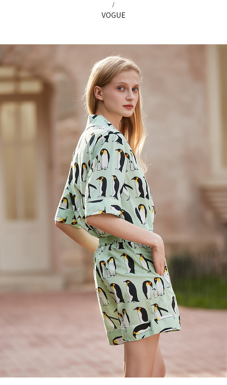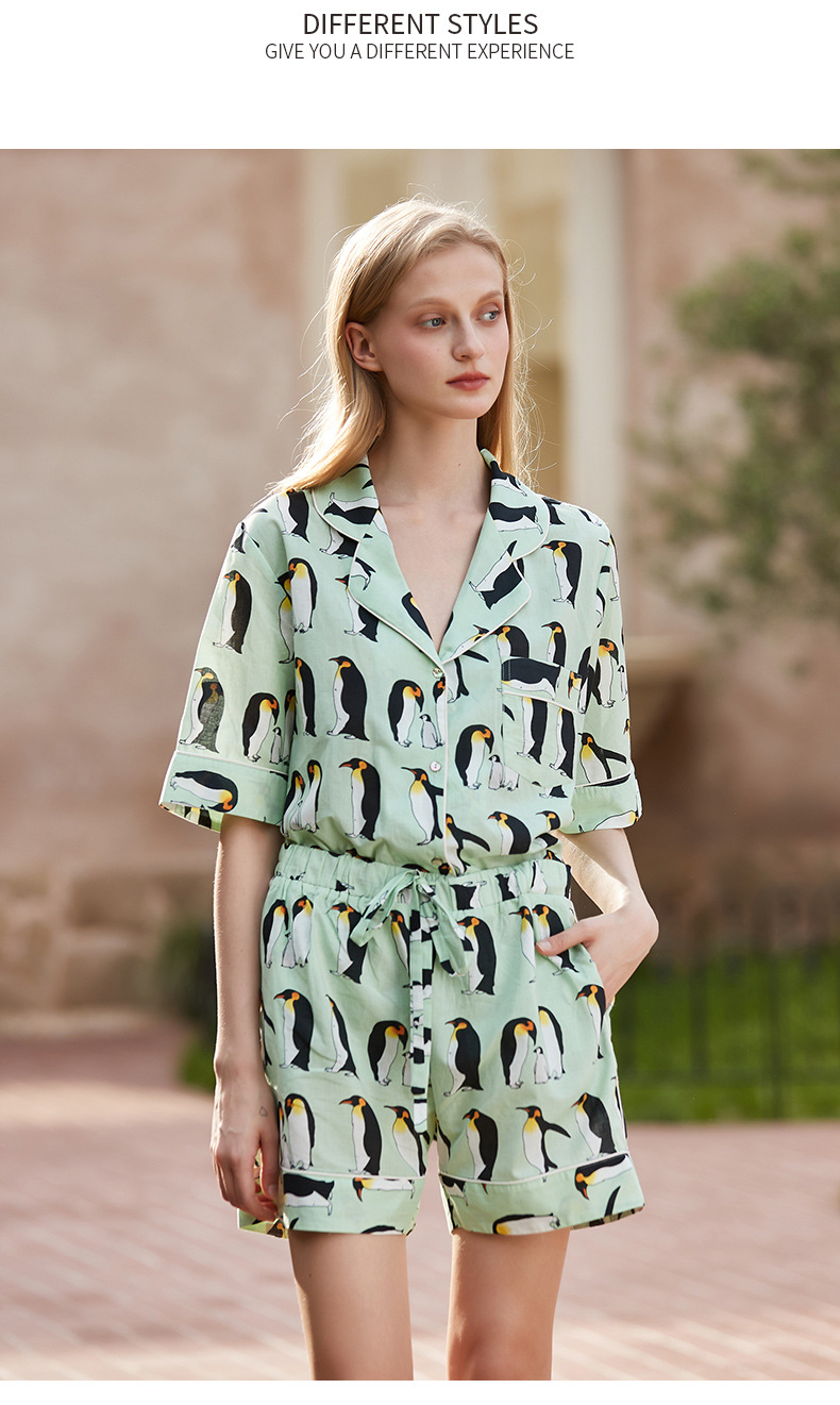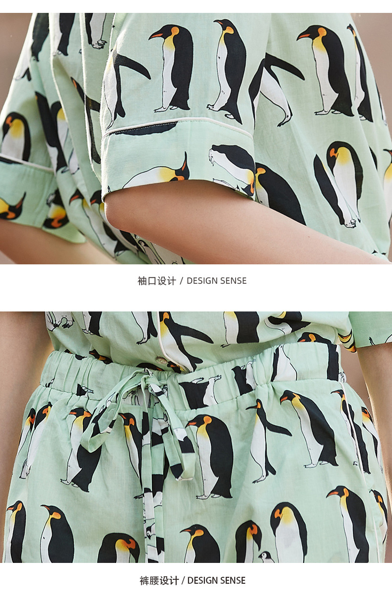 [펭귄] 코튼 파자마 여성 여름 반팔 반바지 얇은 2025 년 겉옷 투피스 세트스토어 가기