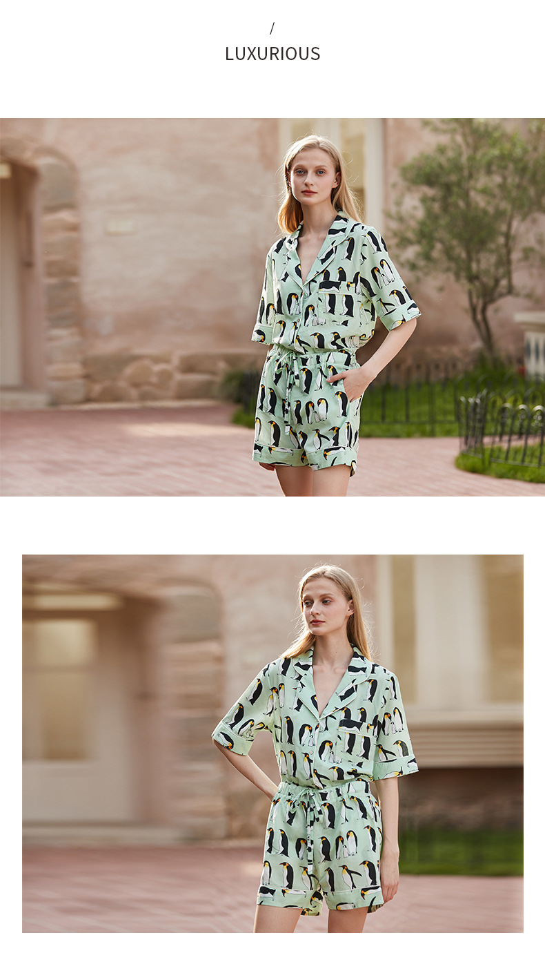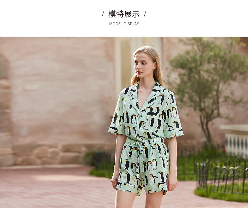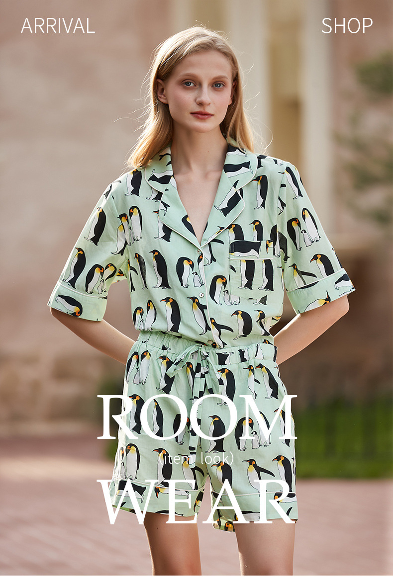 [펭귄] 코튼 파자마 여성 여름 반팔 반바지 얇은 2025 년 겉옷 투피스 세트