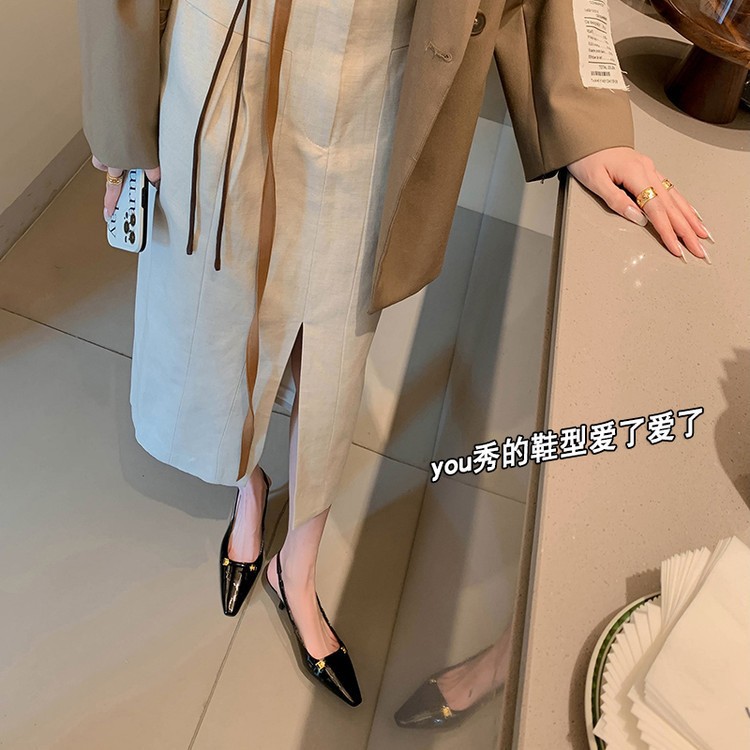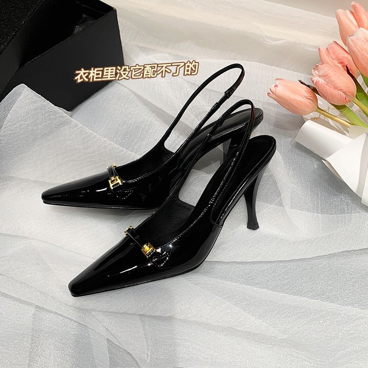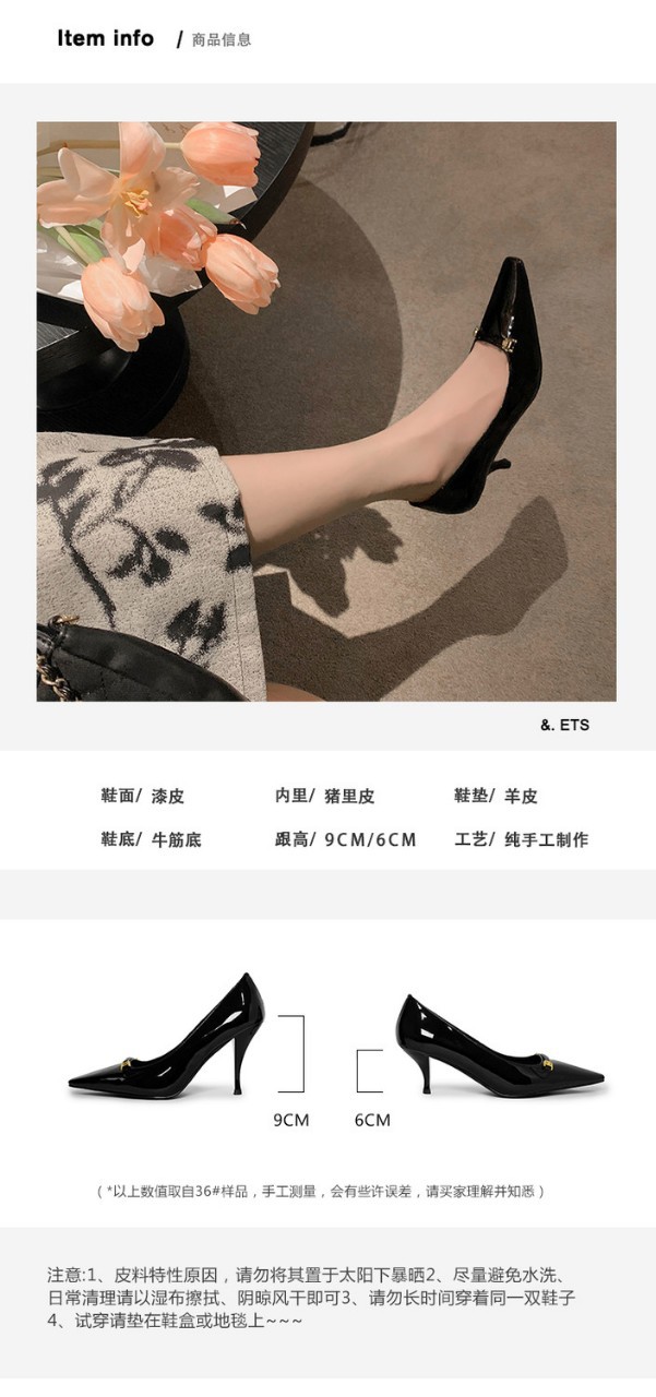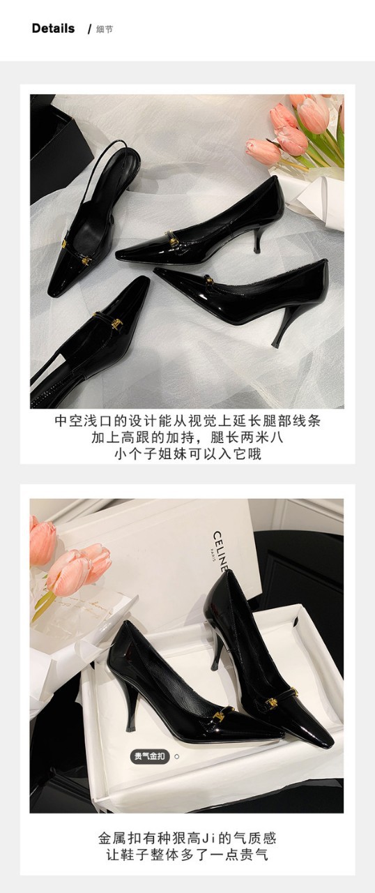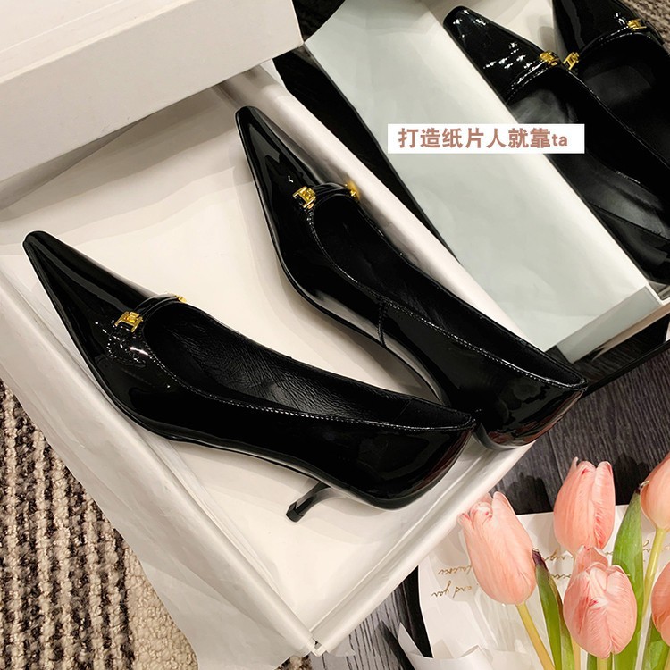 여성 ~ 2025 봄/여름 얇은 발 뒤꿈치 블랙 로우 탑 라인스톤 싱글 신발 포인팅 매일 프리 사이즈 하이힐 여성용 신발스토어 가기