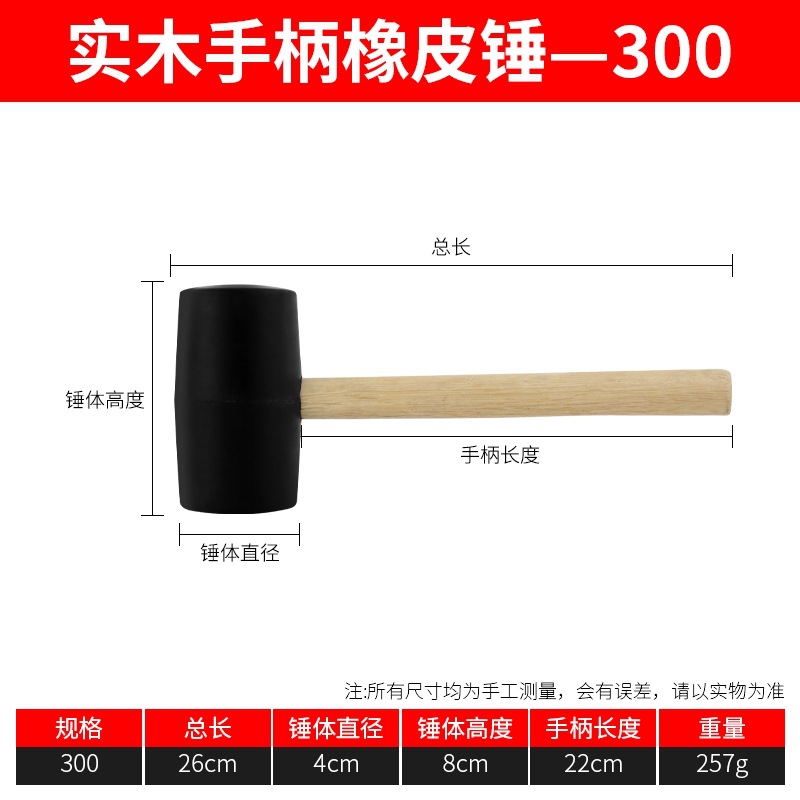 • 나무 손잡이가 달린 300G 블랙헤드 고무 망치(같은 스타일 5개 구매 시 1개 무료)