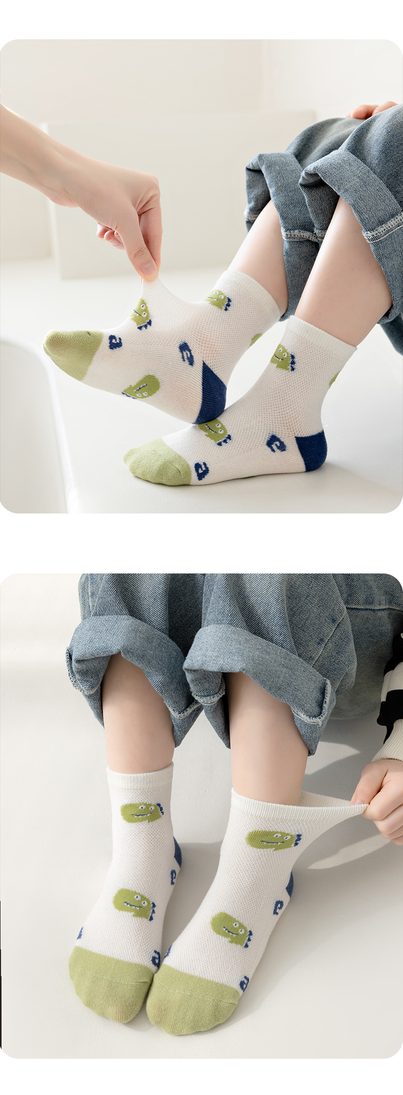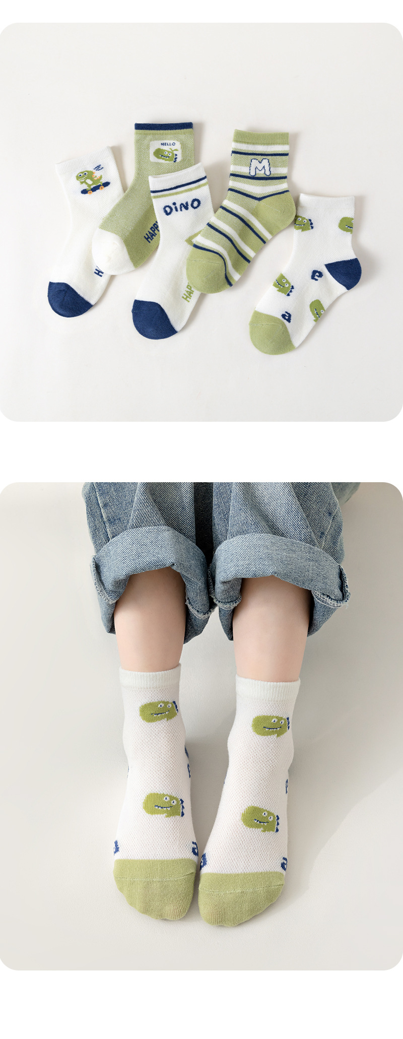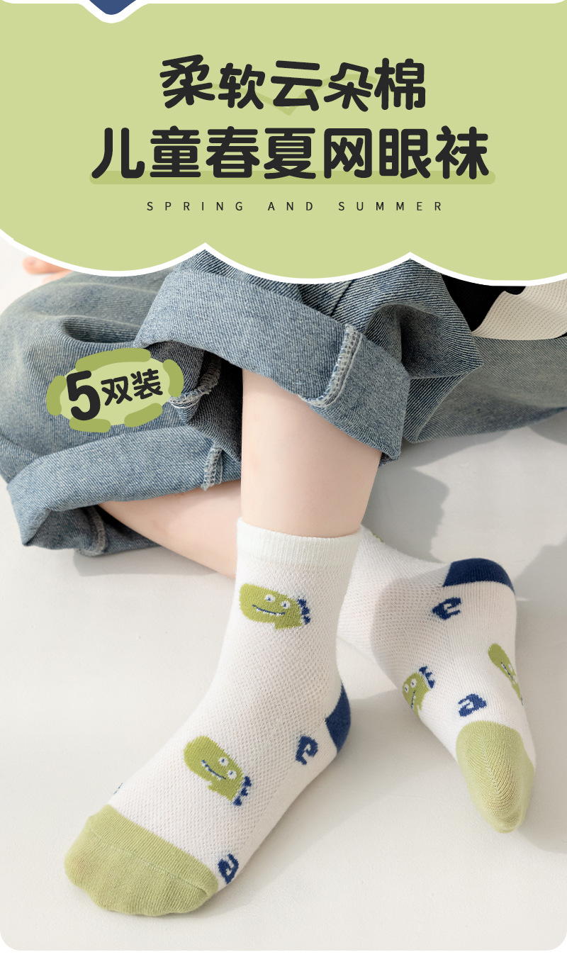 어린이 양말 2026 봄 여름 신상품 가볍고 얇은 메쉬 양말 남아 여아용 만화 구름 면양말 활력 넘치는 공룡 양말