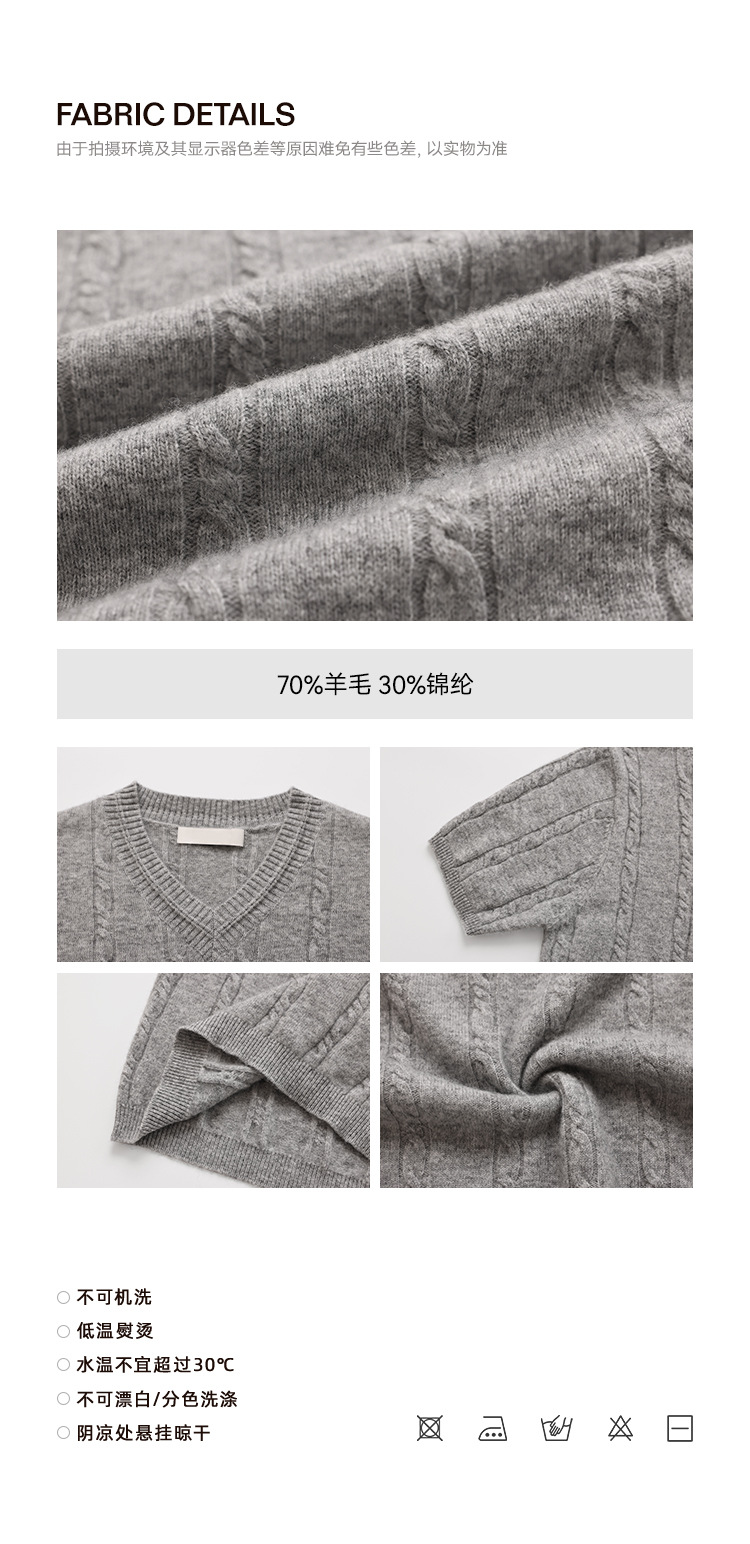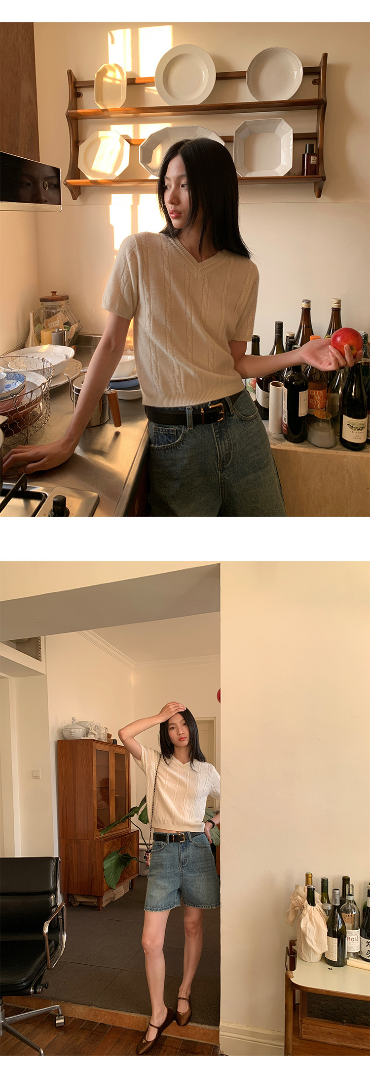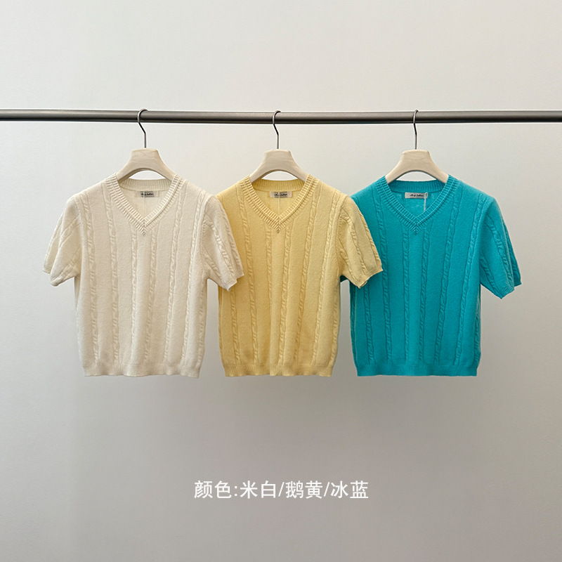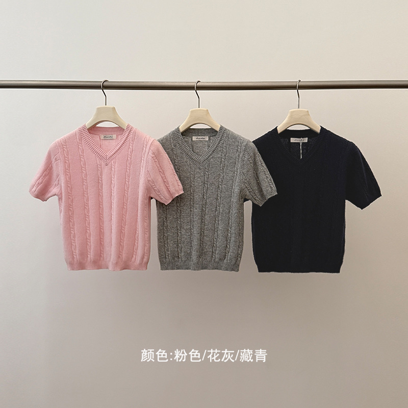 【재고정리, 환불불가】여성용 트위스트 V넥 풀오버 니트셔츠, 봄철 한국 스타일 부드럽고 따뜻한 반팔 상의 19108스토어 가기