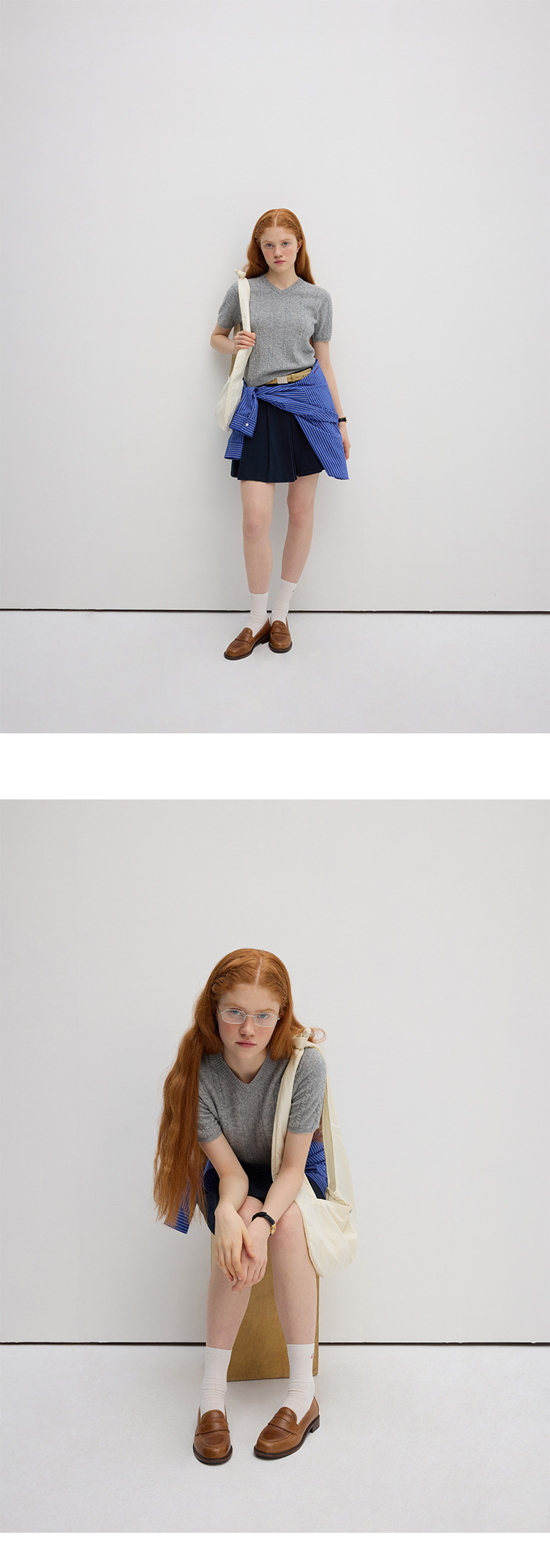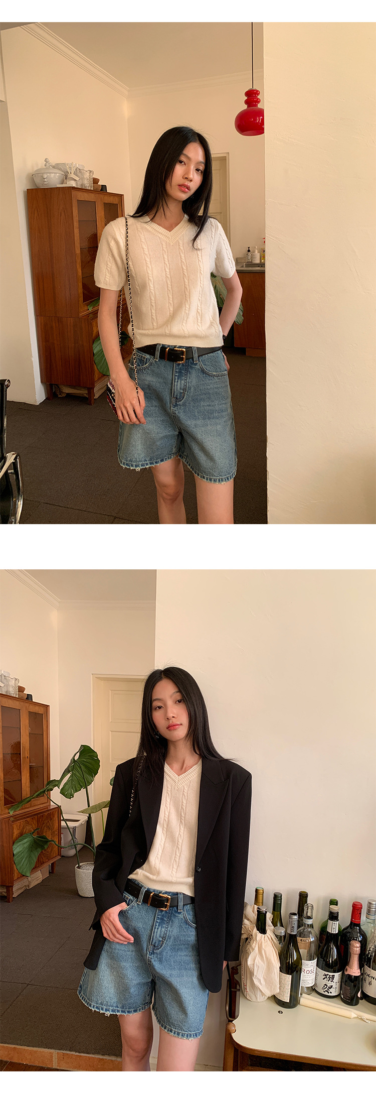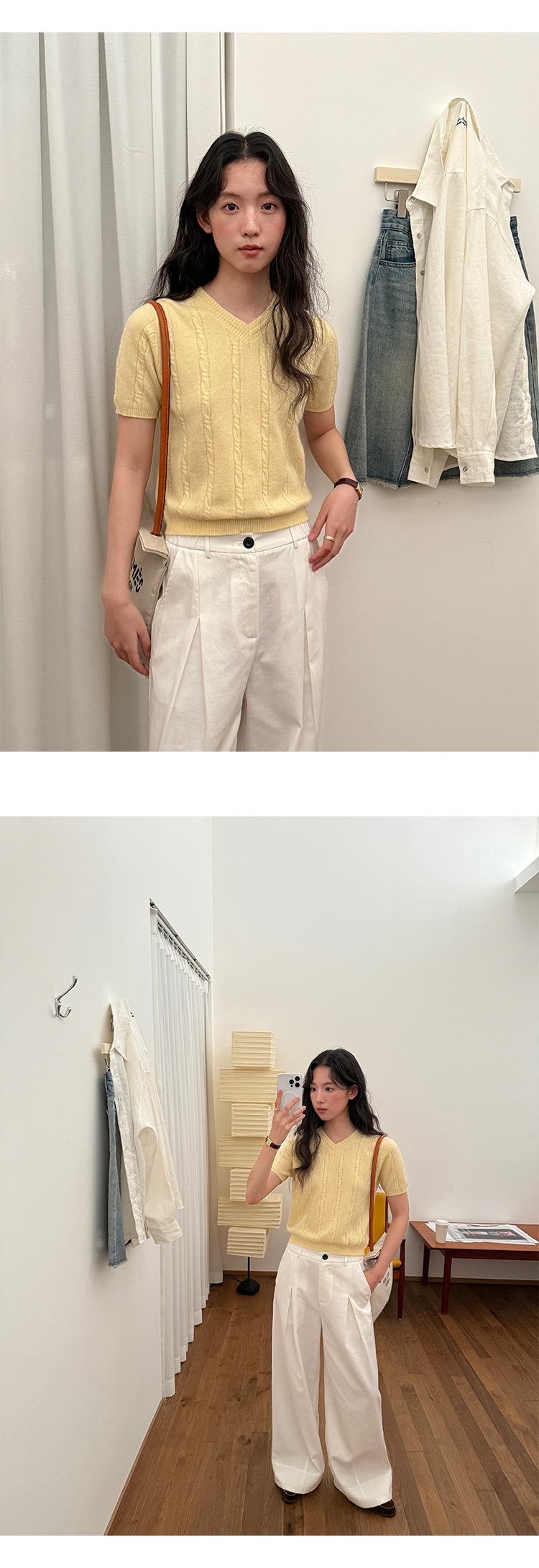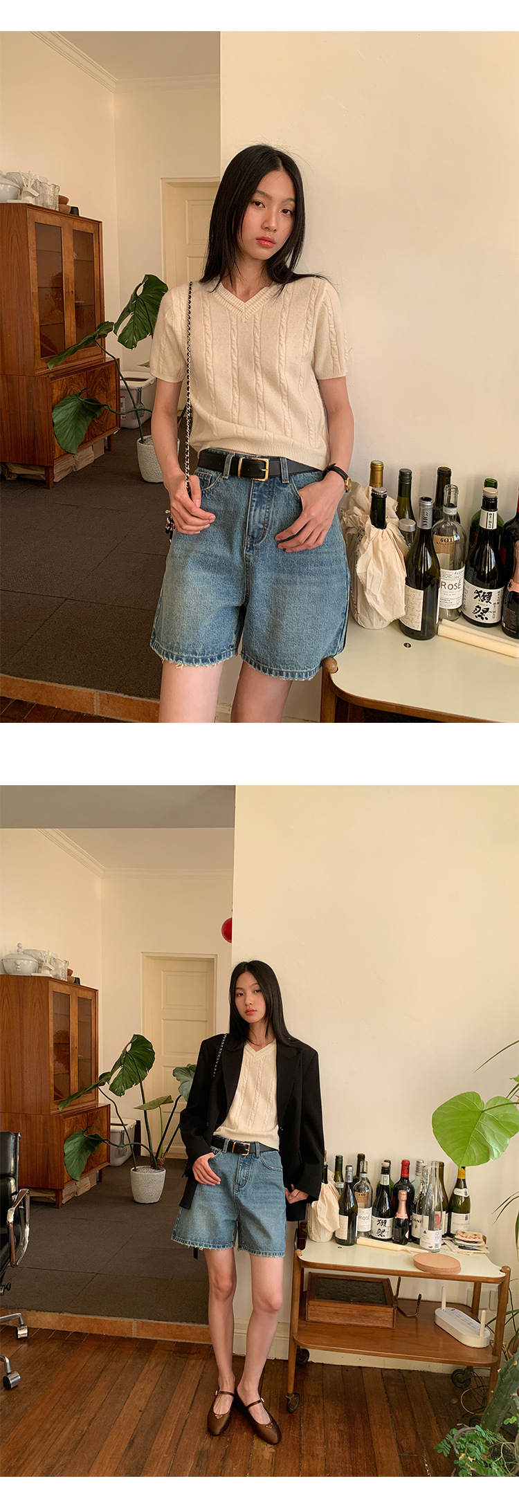 【재고정리, 환불불가】여성용 트위스트 V넥 풀오버 니트셔츠, 봄철 한국 스타일 부드럽고 따뜻한 반팔 상의 19108스토어 가기