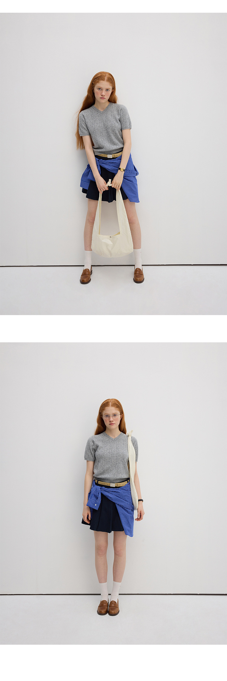 【재고정리, 환불불가】여성용 트위스트 V넥 풀오버 니트셔츠, 봄철 한국 스타일 부드럽고 따뜻한 반팔 상의 19108