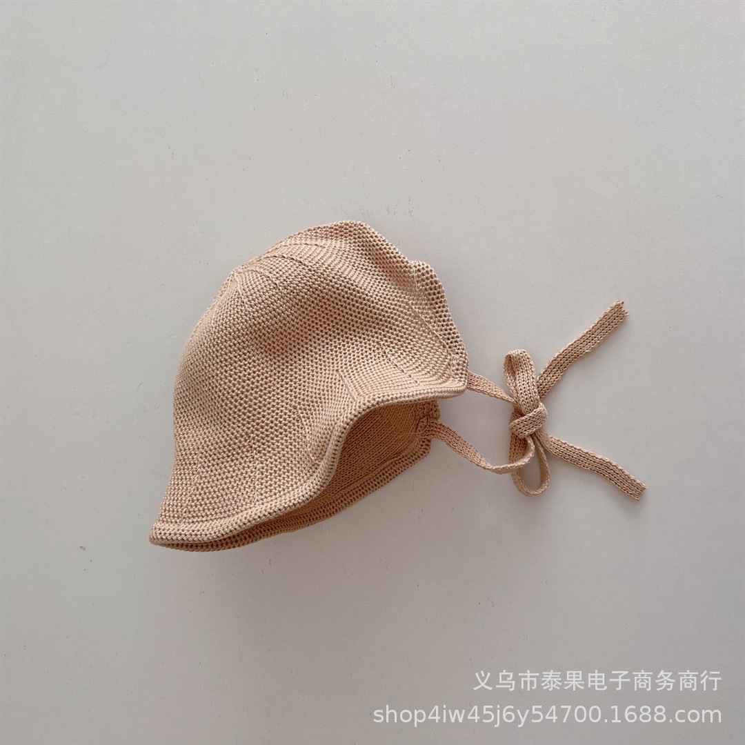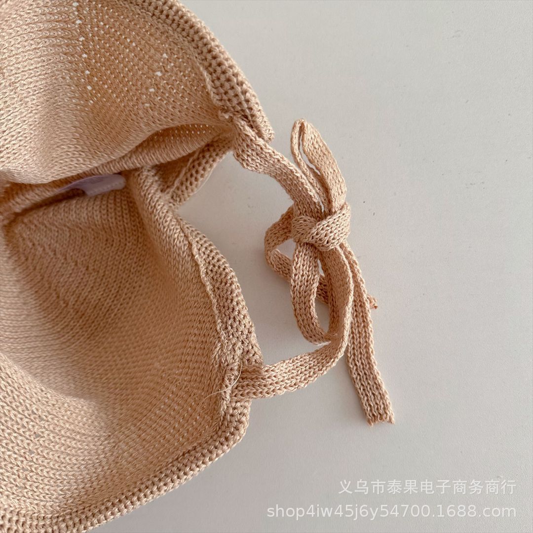일본 스타일 새로운 어린이 간단한 단색 스트랩 큰 Eave 선 스크린 어부 모자 여름 니트 통기성 양산 냄비 모자 트렌디스토어 가기