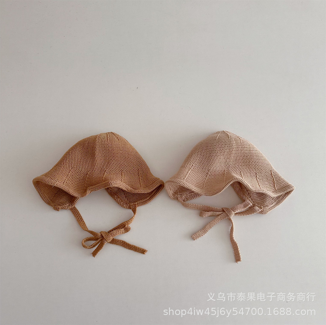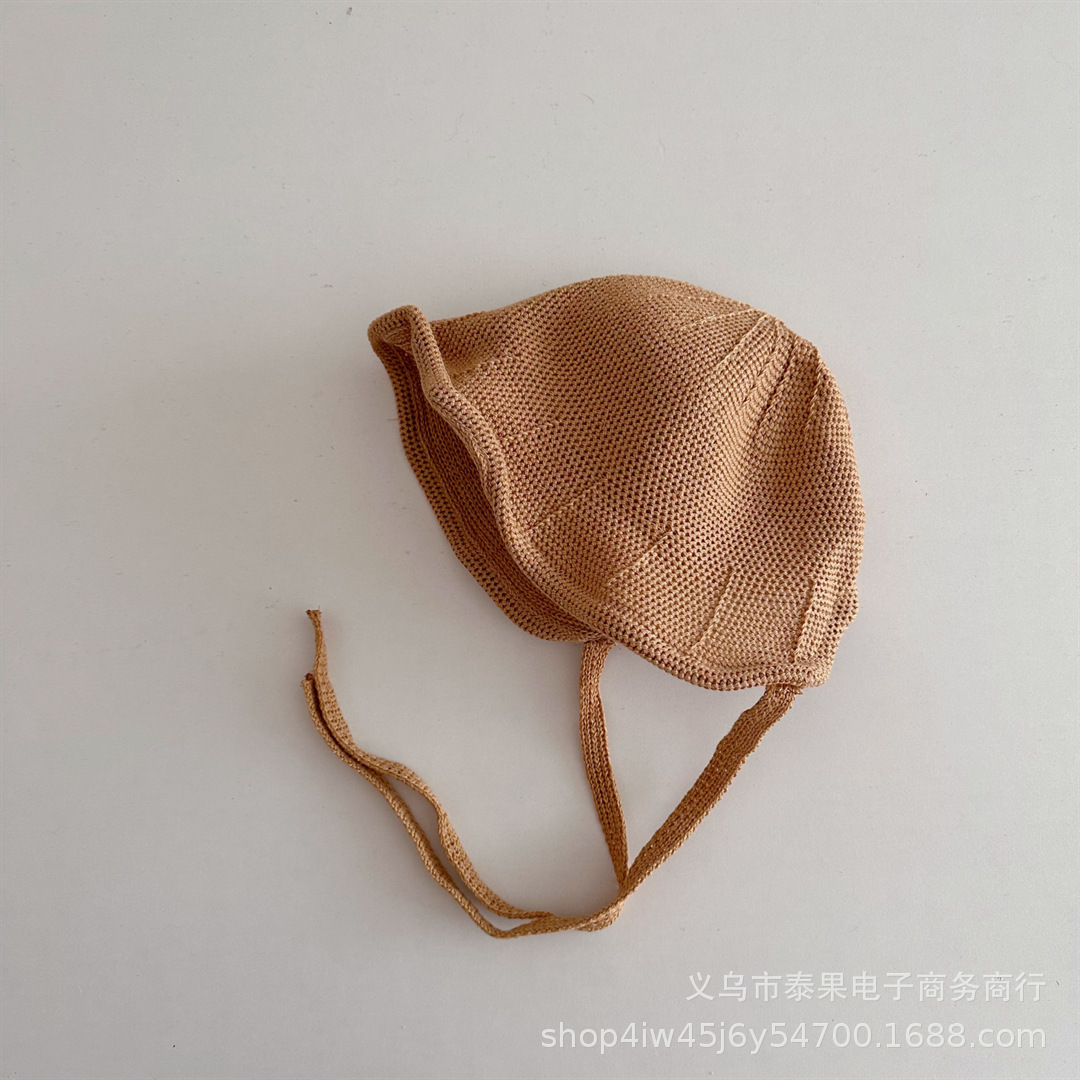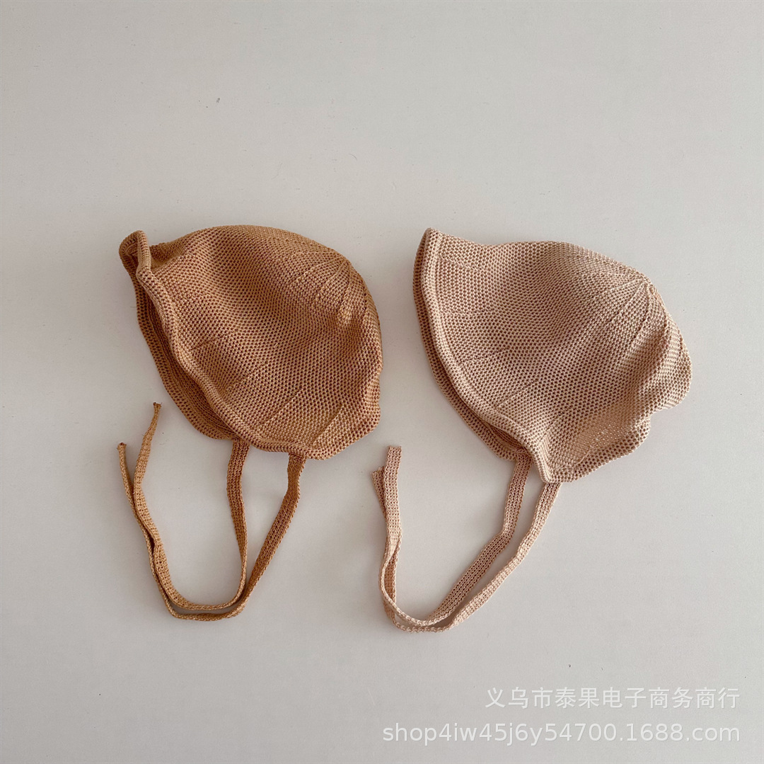 일본 스타일 새로운 어린이 간단한 단색 스트랩 큰 Eave 선 스크린 어부 모자 여름 니트 통기성 양산 냄비 모자 트렌디