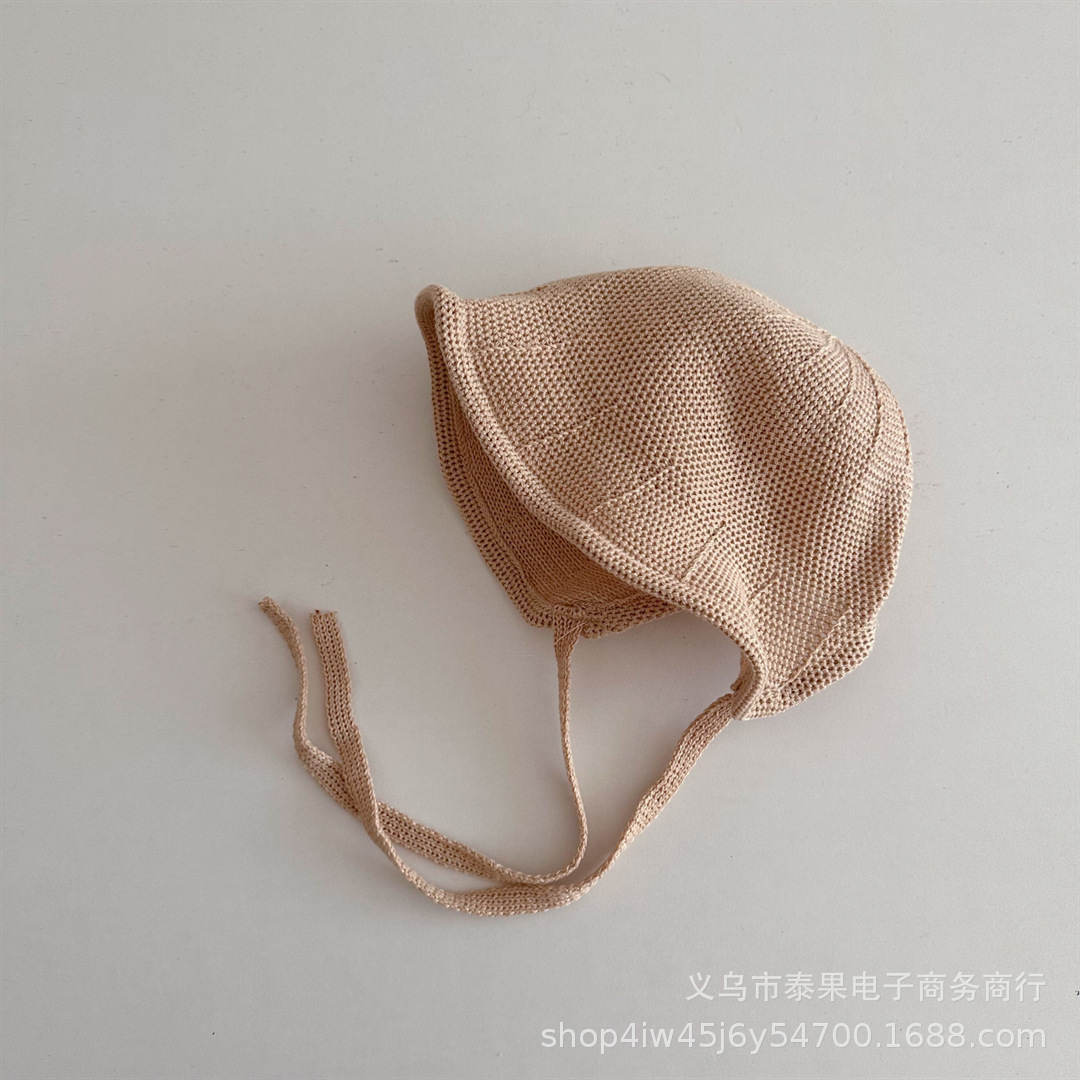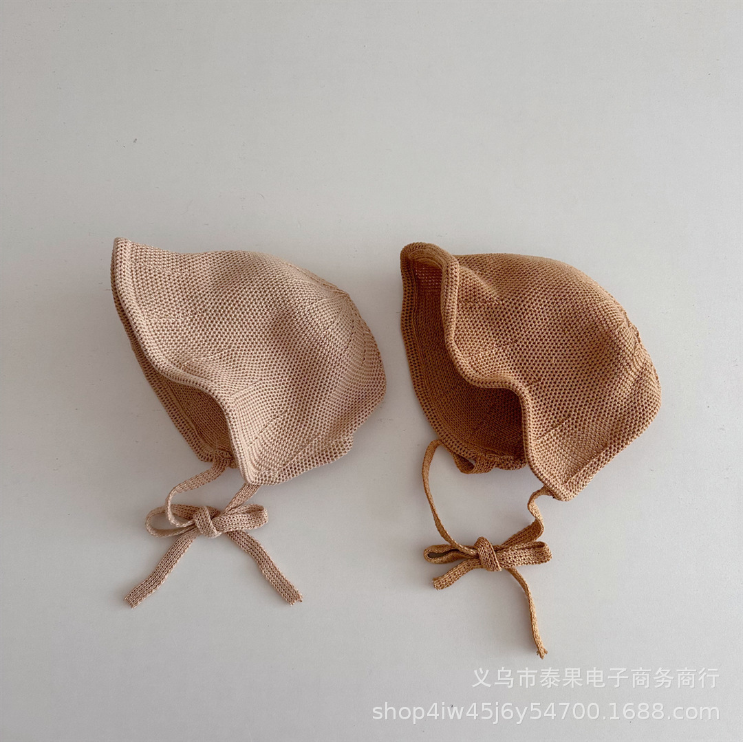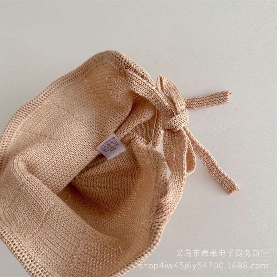 일본 스타일 새로운 어린이 간단한 단색 스트랩 큰 Eave 선 스크린 어부 모자 여름 니트 통기성 양산 냄비 모자 트렌디