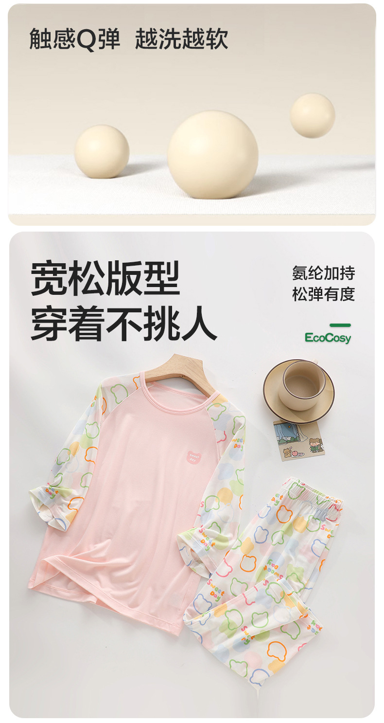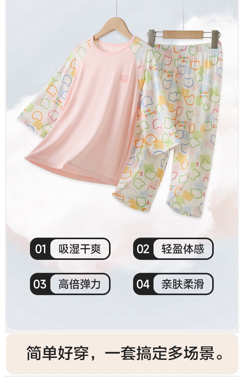 25 세 여름 소녀 잠옷 클래스 Youkosi 얇은 7 점 소매 아기의 집 옷 룰라 어깨가 달린 소녀의 집 옷