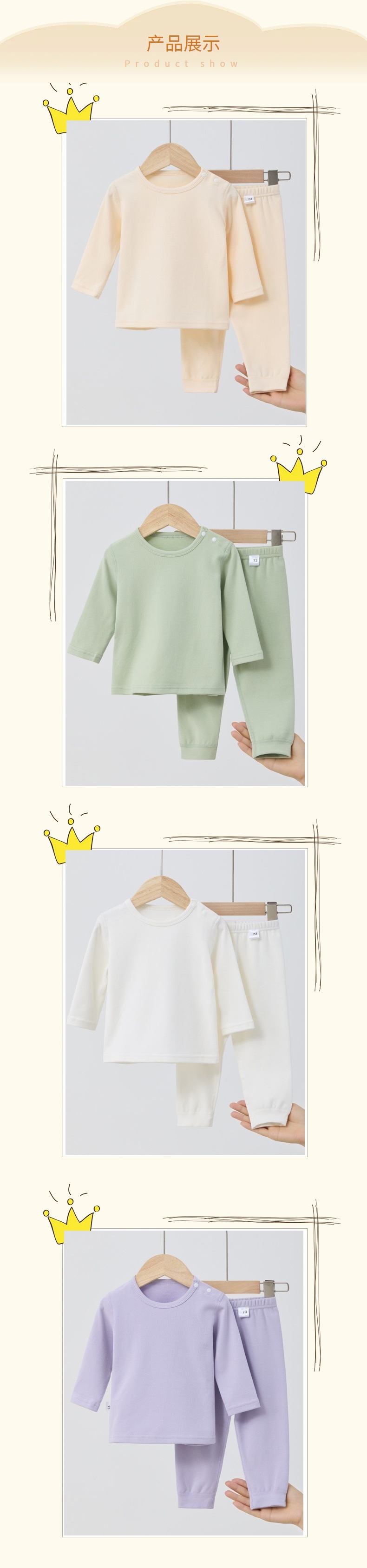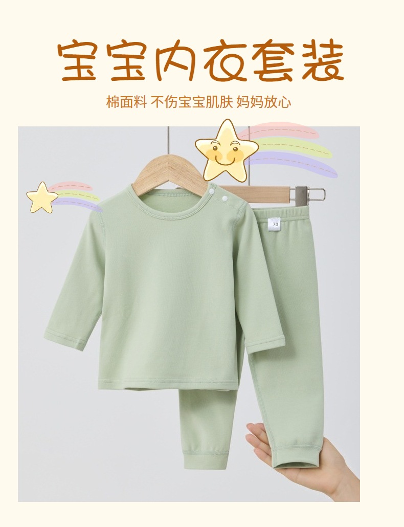 아기 무봉제 가을옷 가을바지 부드러운 벨벳 속옷 세트 유아 홈웨어 남아 여아 아동복 순면 기모
