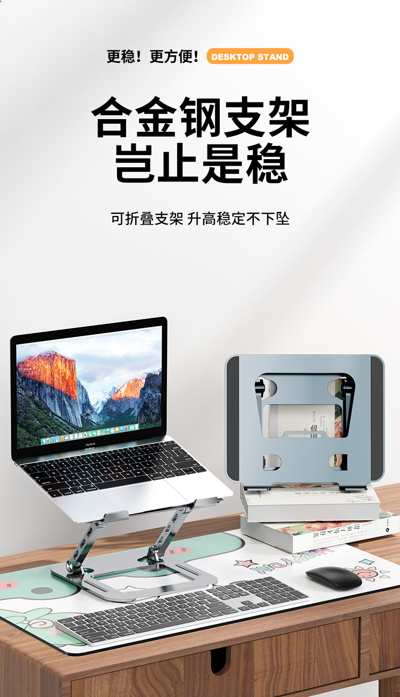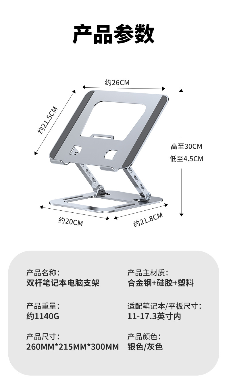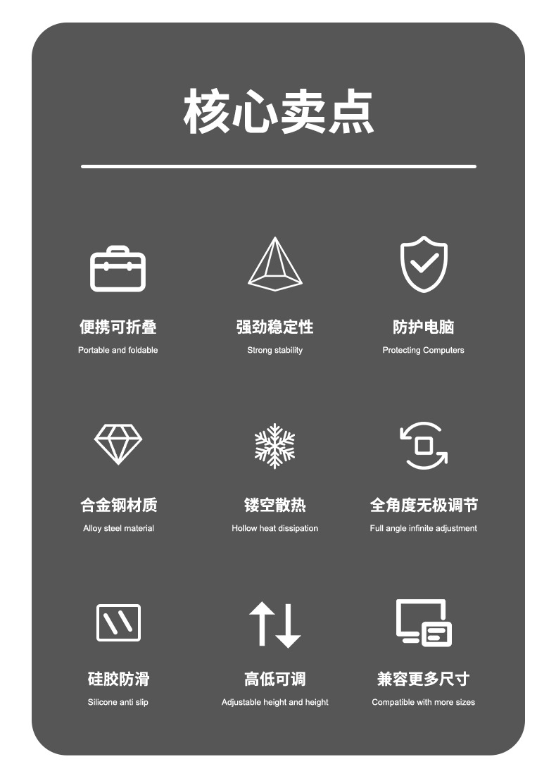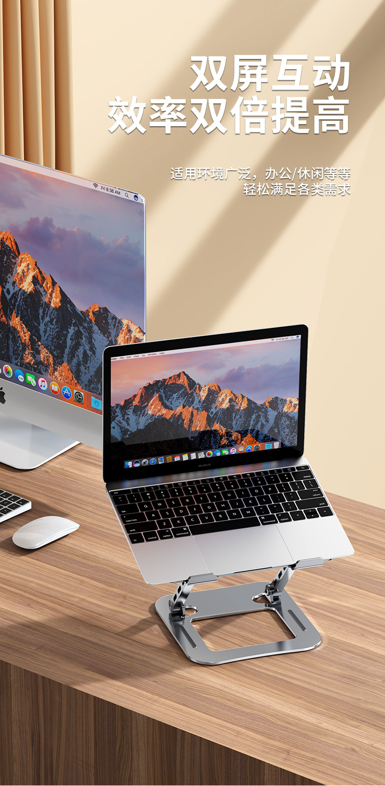 跨境可升降折叠便携收纳金属托架笔记本电脑支架桌面增高散热