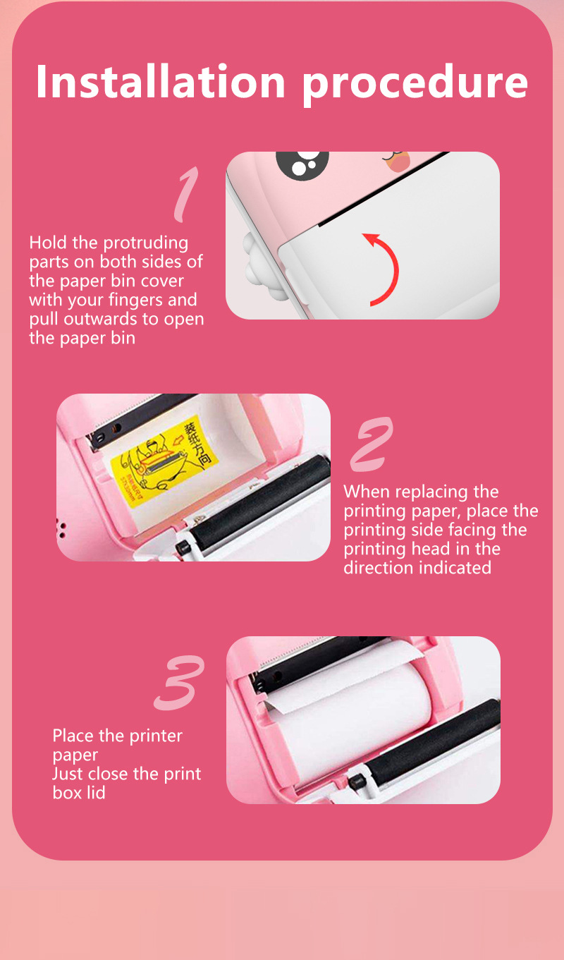 • Q5S 어린이용 카메라 - 핑크 - 단일 카메라(표준 인쇄 용지 3롤) + 32G 메모리 카드 + 카드 리더기