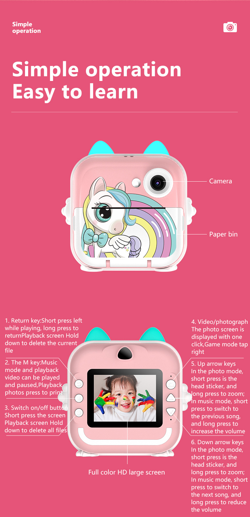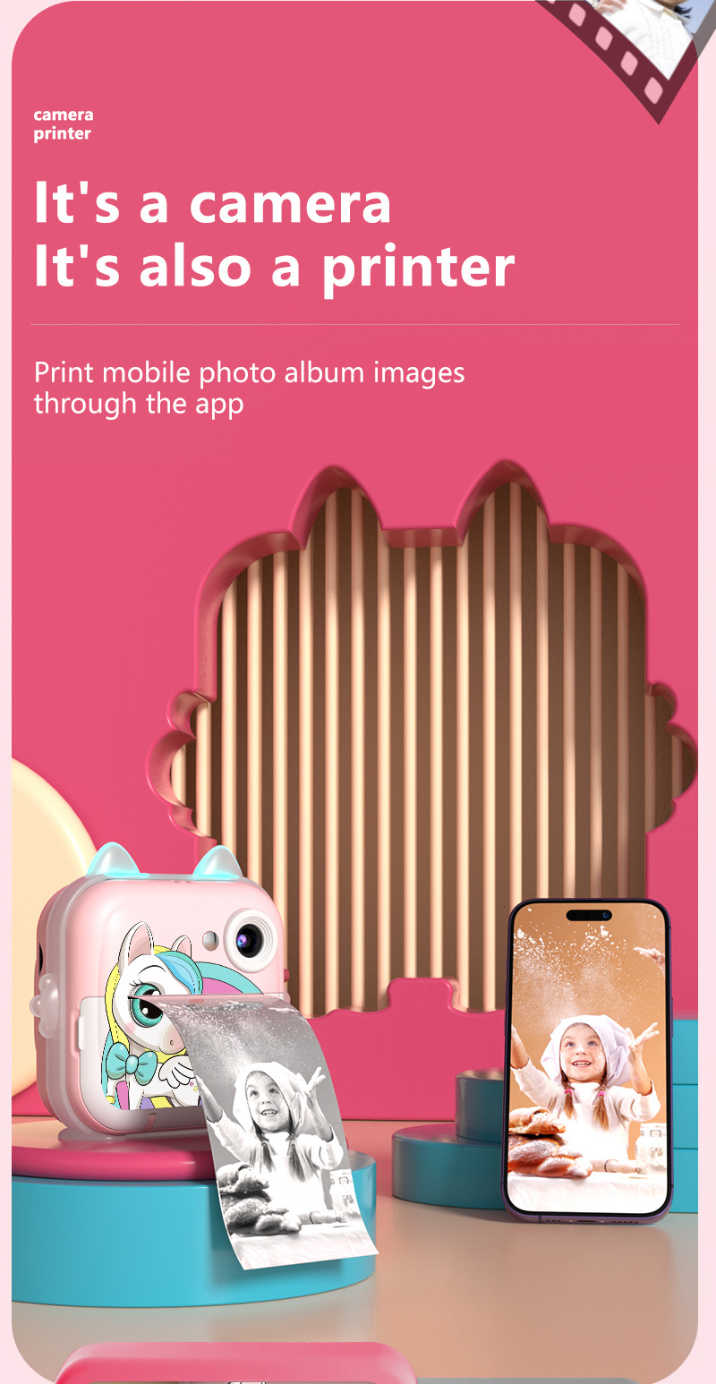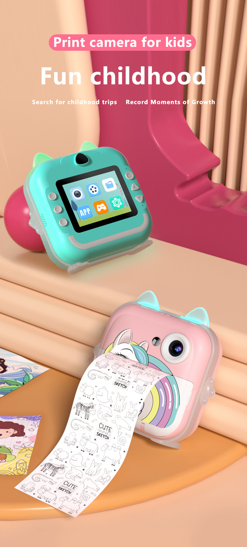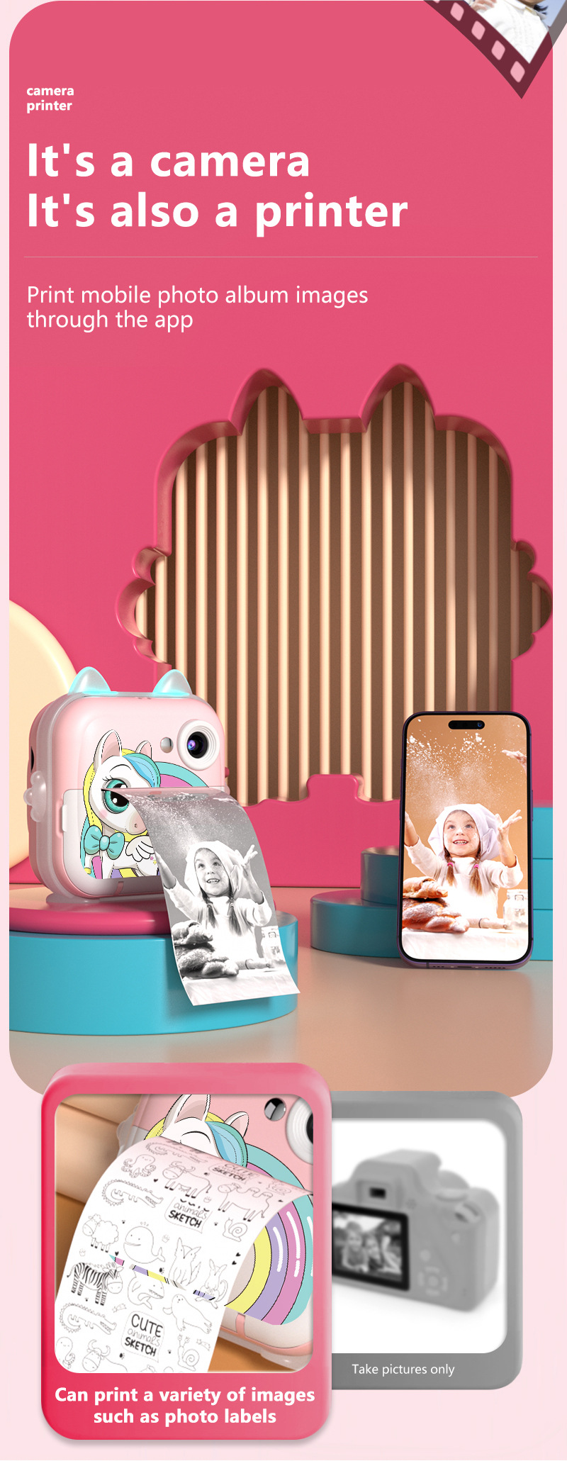 국경 간 새로운 페가수스 인쇄 카메라 어린이 디지털 카메라, 사랑하는 귀여운 만화 HD 인쇄 카메라