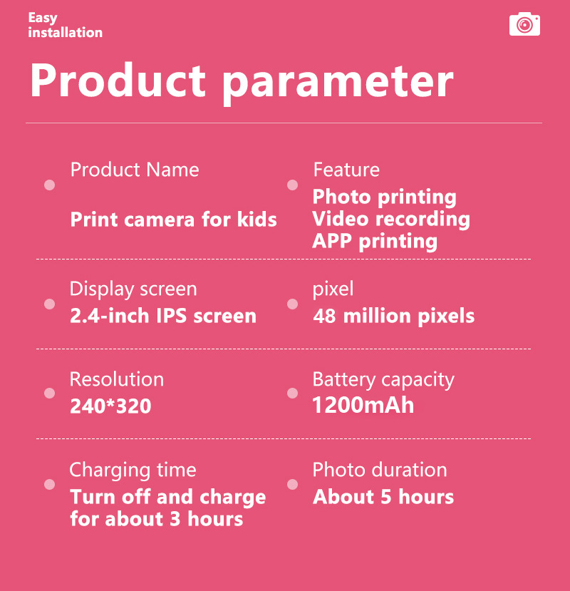 • Q5 어린이용 폴라로이드 핑크 + 32G 고속 카드 + 카드 리더기 + 만화 스티커 + 폴라로이드 종이 5롤 + 접착지 5롤 + 색지 3롤 + 색펜 6개