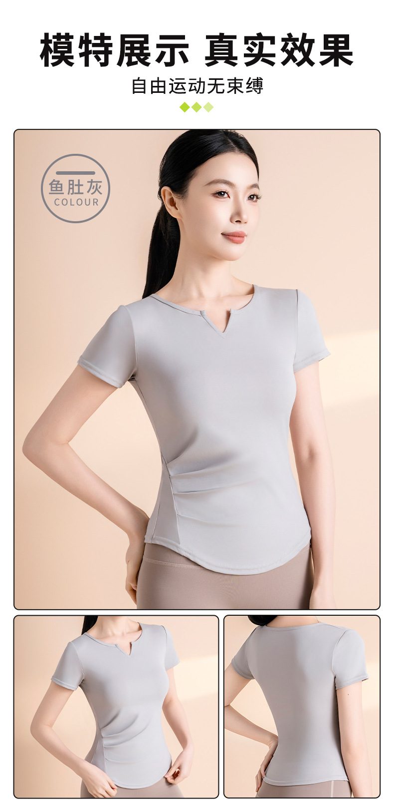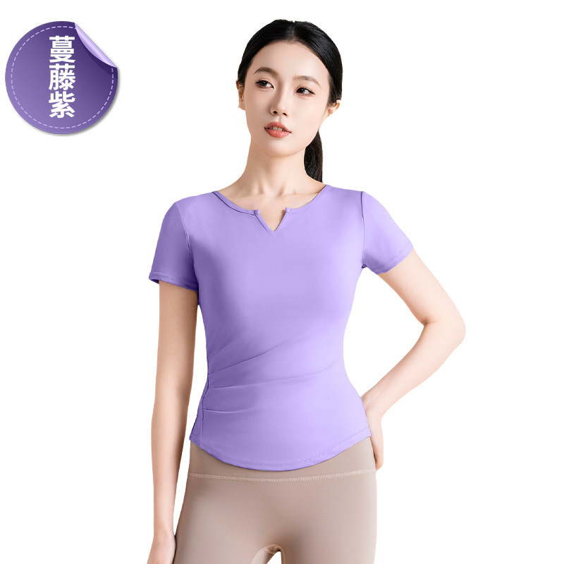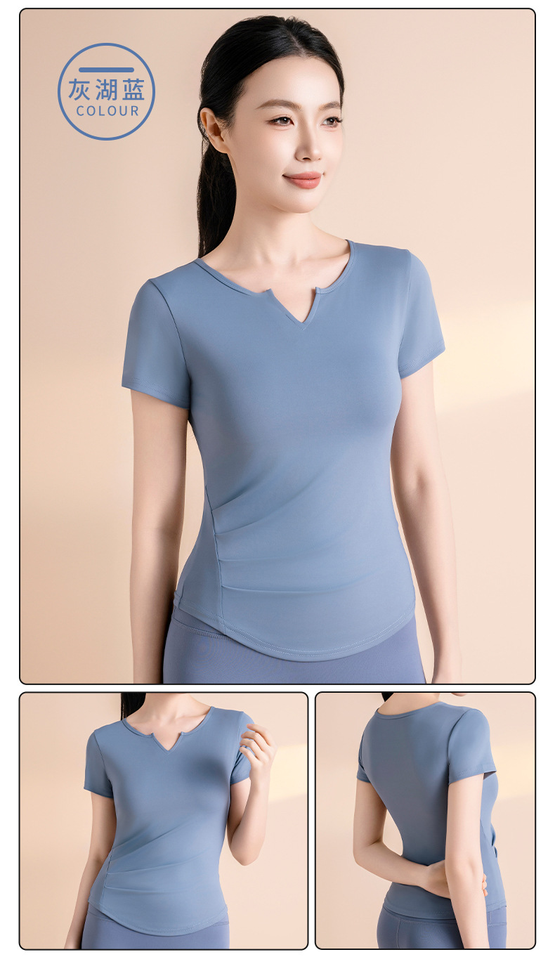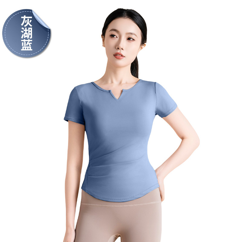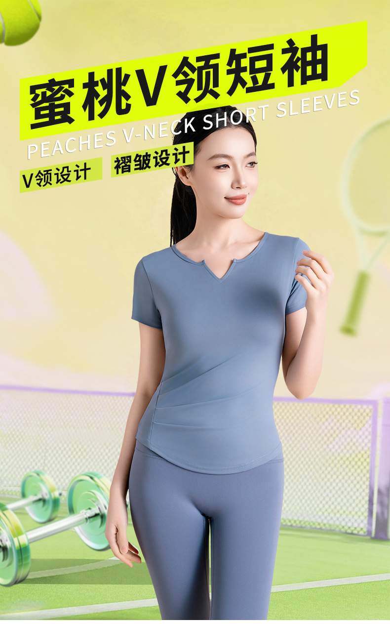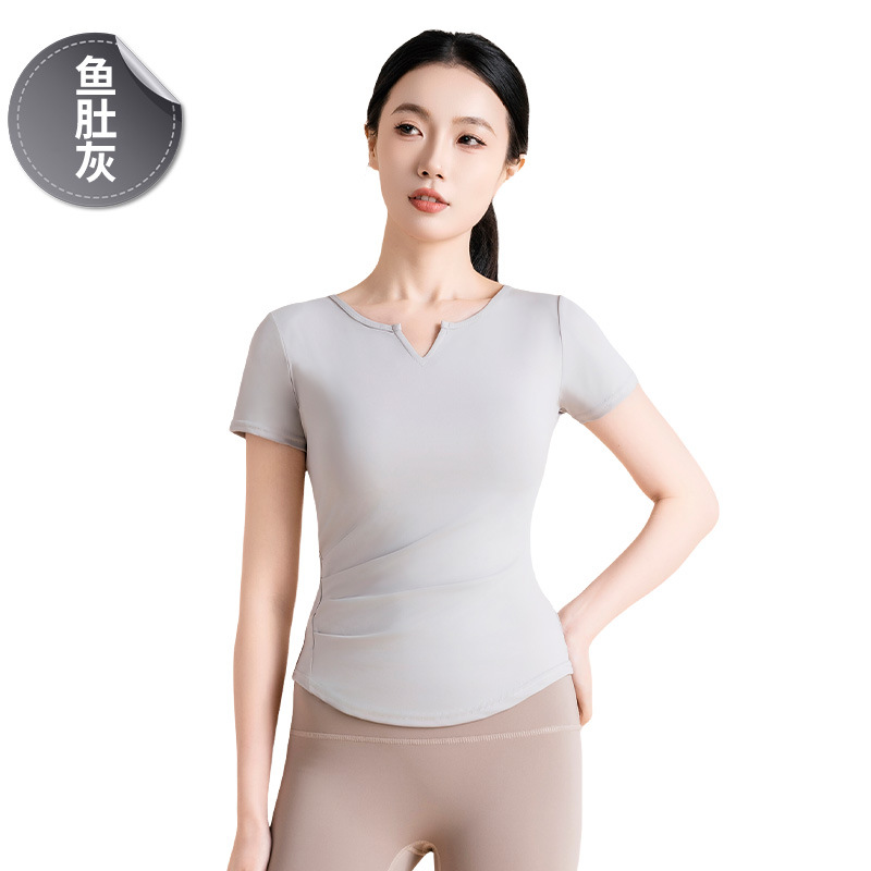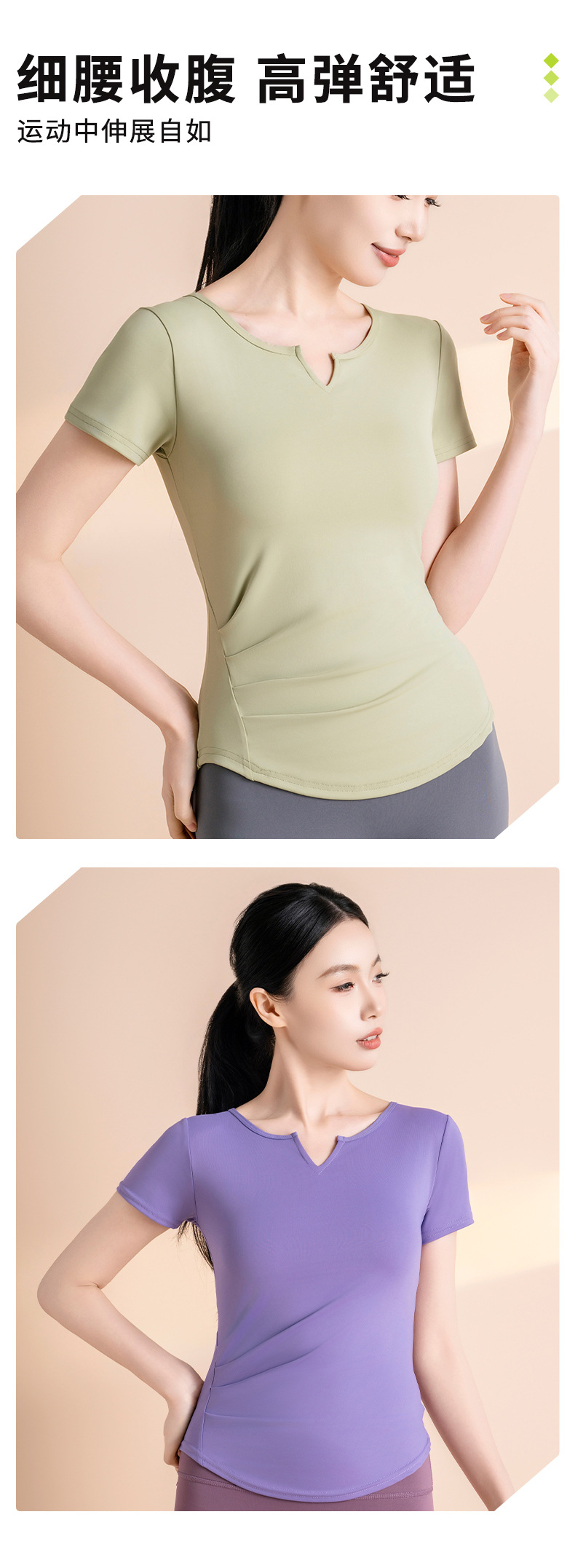 여름 여성의 V 넥 솔리드 컬러 슬림 핏 웨이스트 느슨한 올 매치 러닝 피트니스 스포츠 요가 의류 반팔 티셔츠스토어 가기