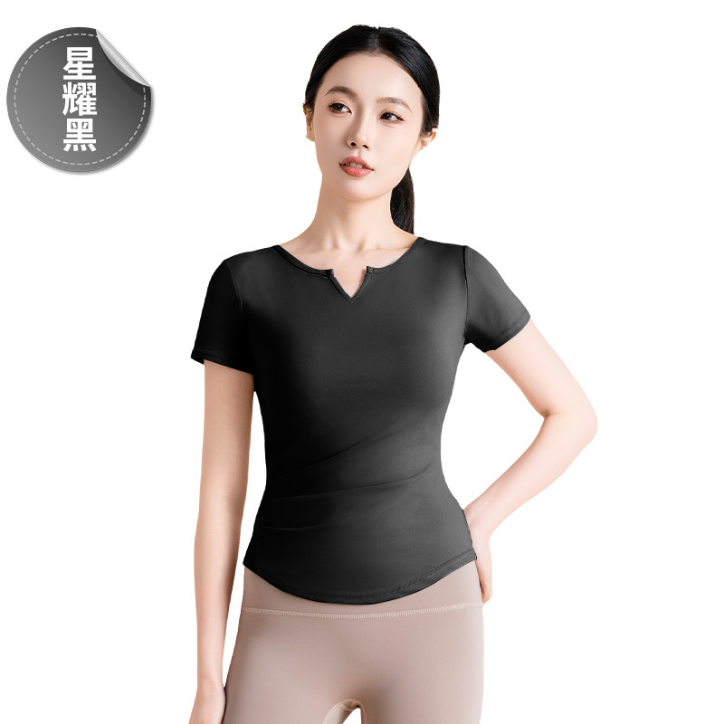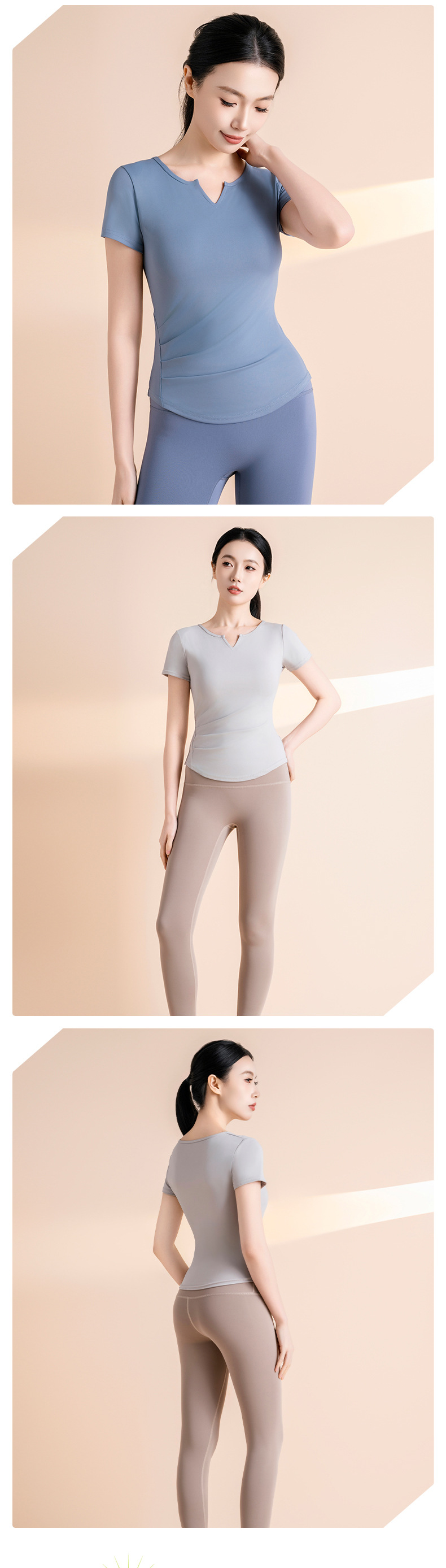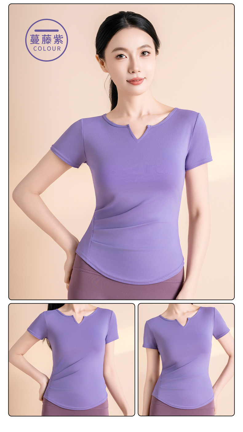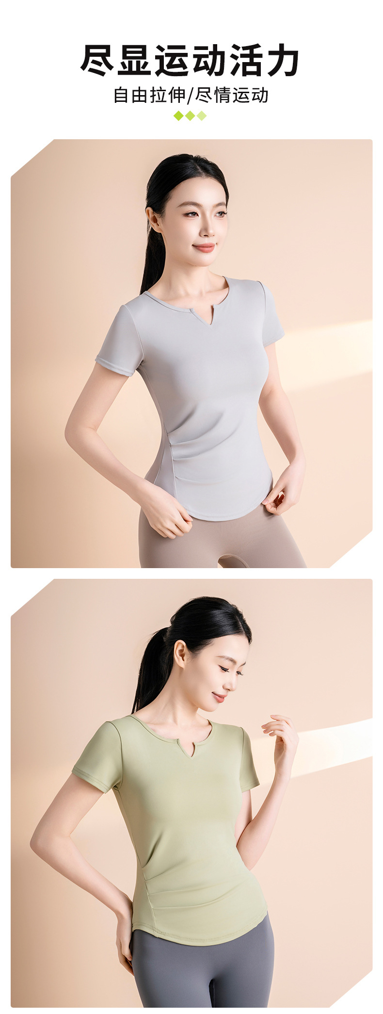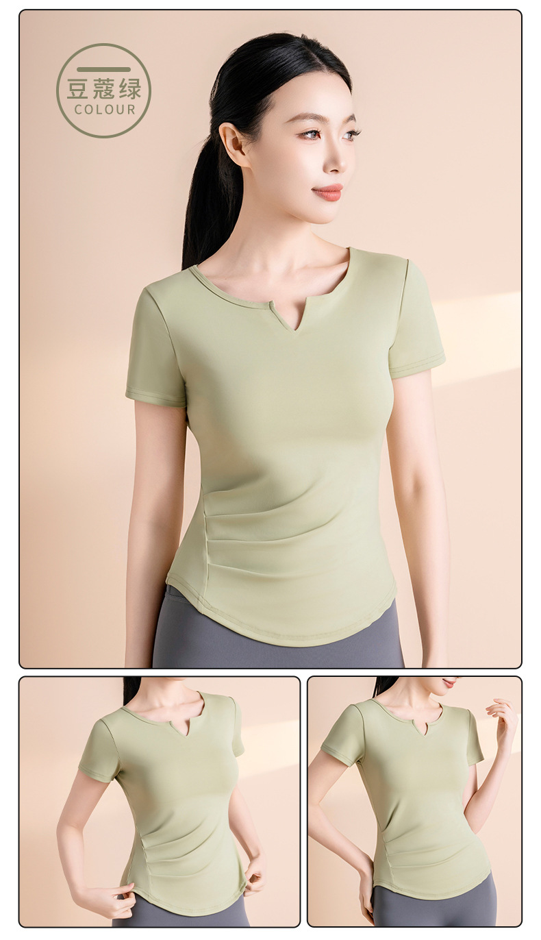 여름 여성의 V 넥 솔리드 컬러 슬림 핏 웨이스트 느슨한 올 매치 러닝 피트니스 스포츠 요가 의류 반팔 티셔츠스토어 가기