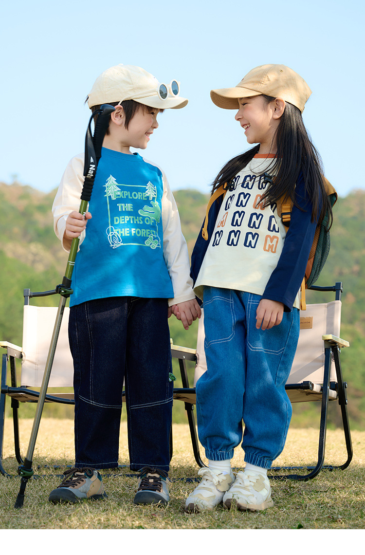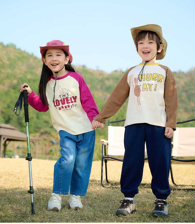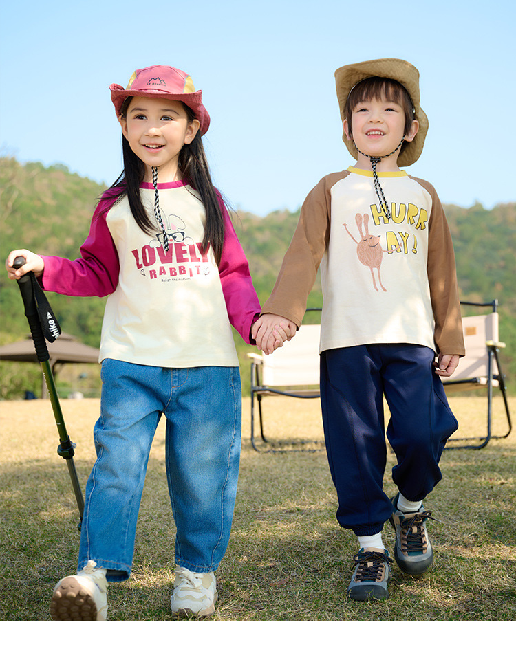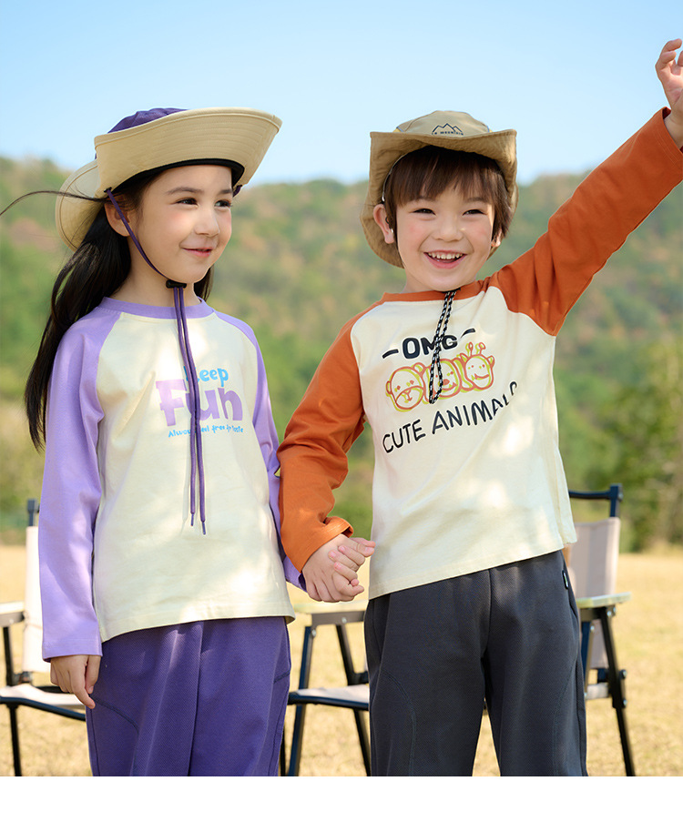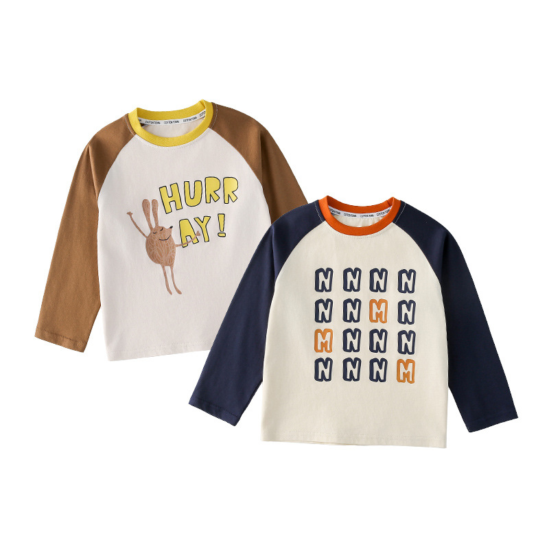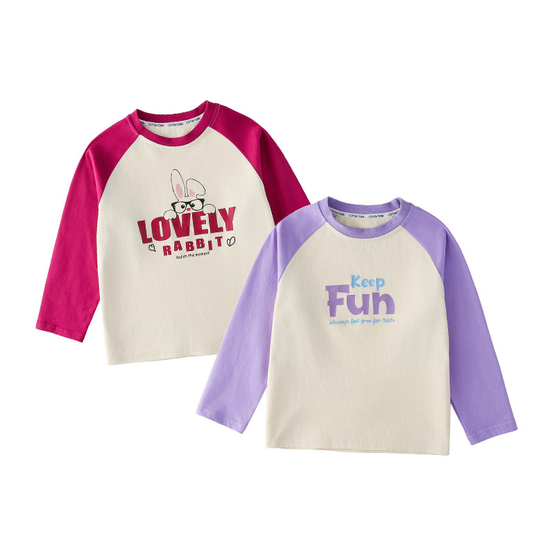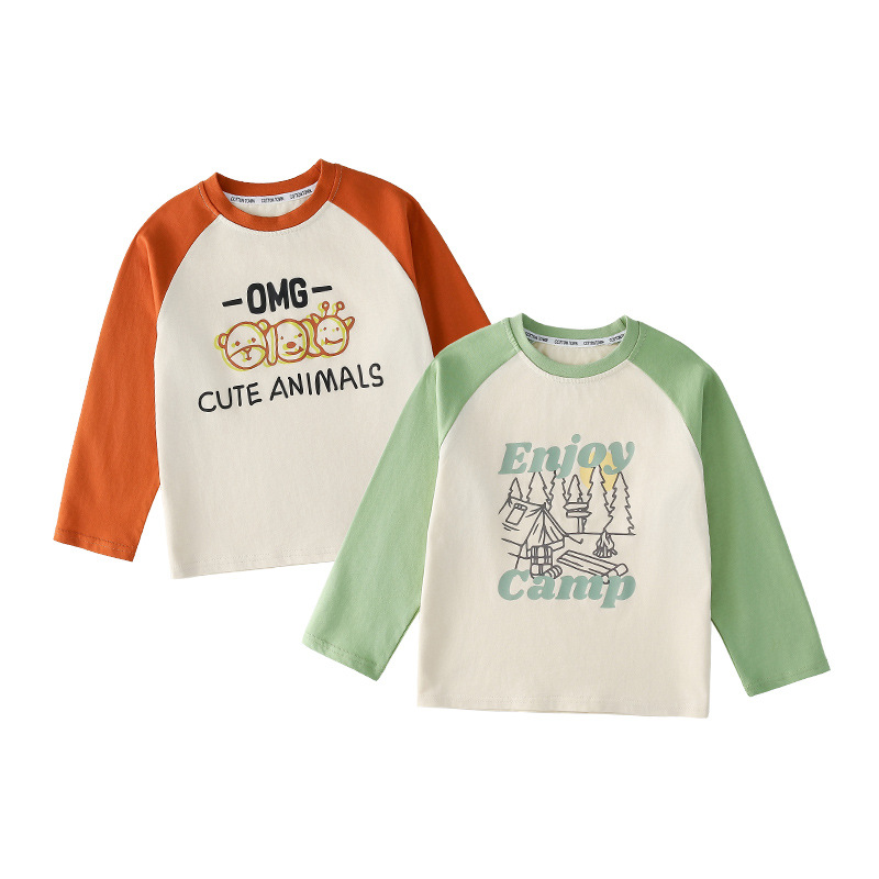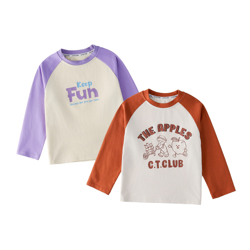 Miantiantang 순수 코튼 소년 긴팔 티셔츠 봄, 가을 소녀 바닥 셔츠 어린이 항균 캐주얼 투피스 탑