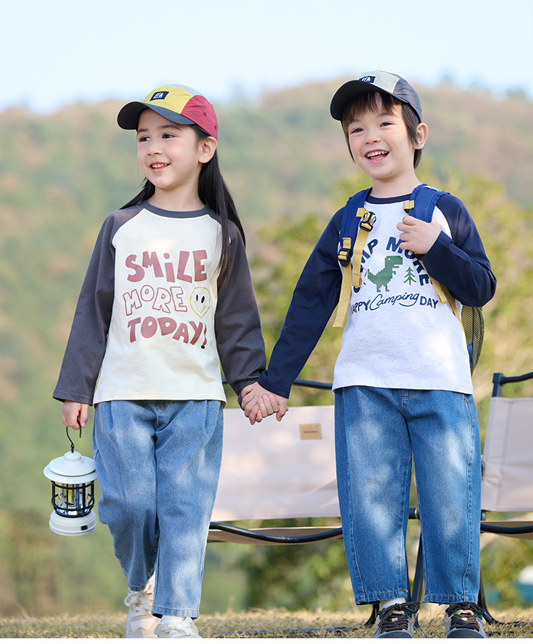 Miantiantang 순수 코튼 소년 긴팔 티셔츠 봄, 가을 소녀 바닥 셔츠 어린이 항균 캐주얼 투피스 탑스토어 가기