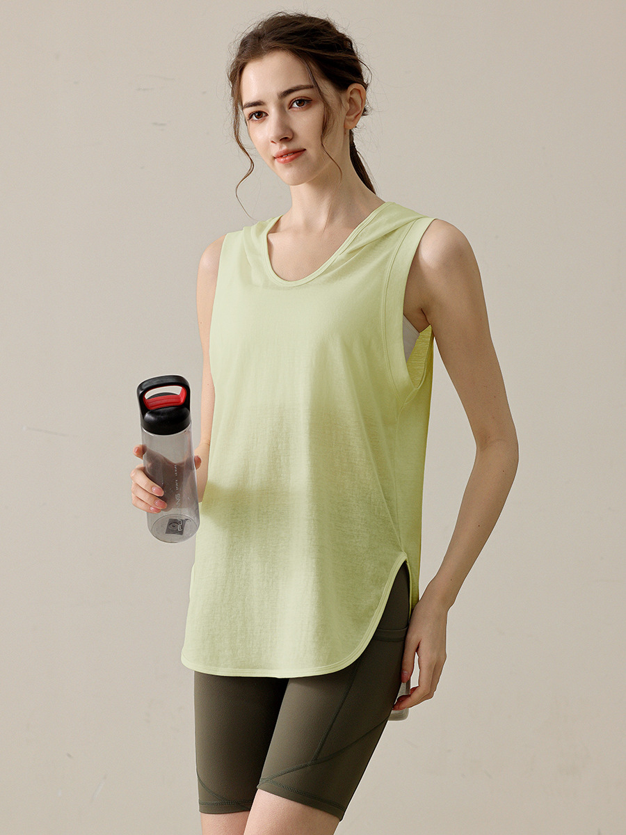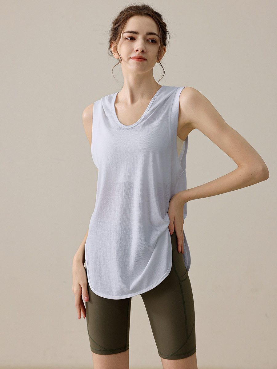 새로운 느슨한 패션 슬림 스포츠 모자 조끼 여성의 달리기 피트니스 민소매 요가 옷 탑 여름