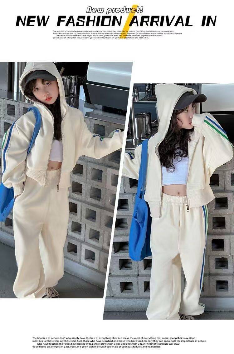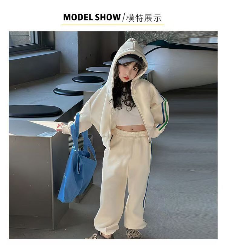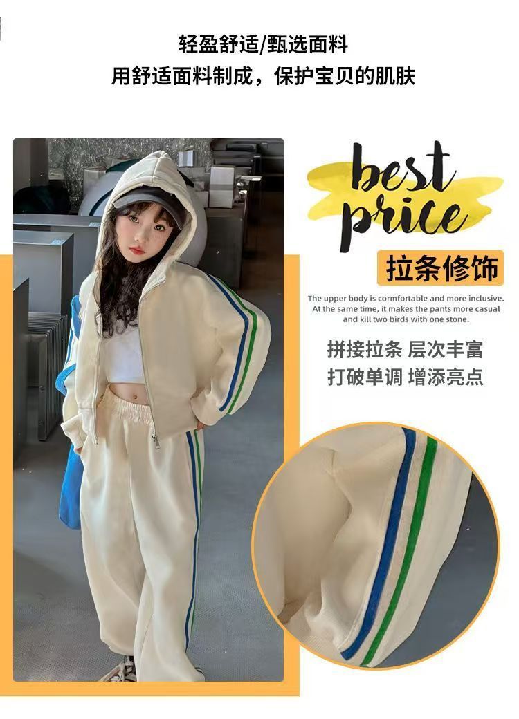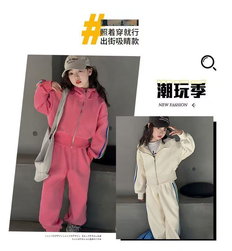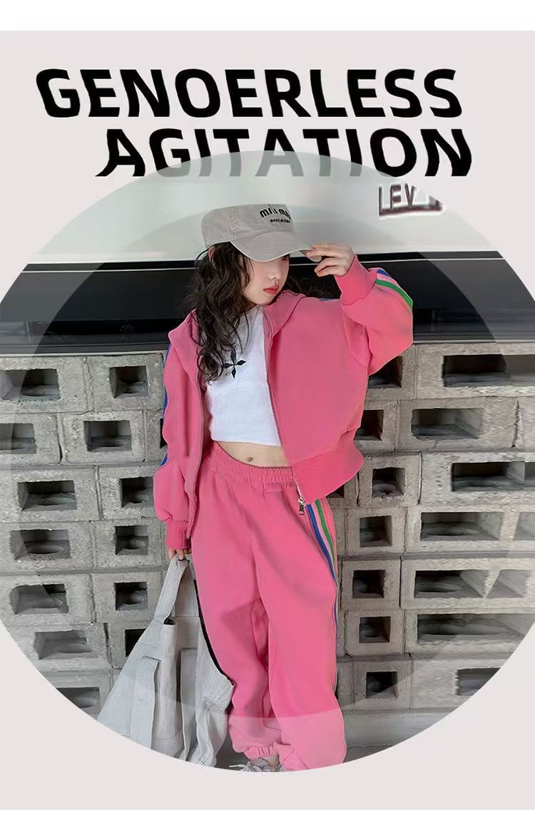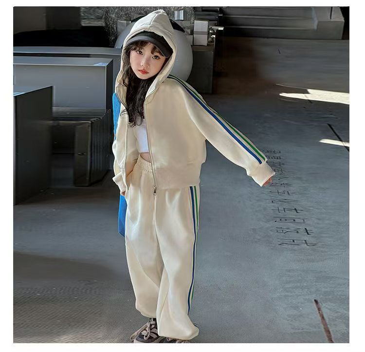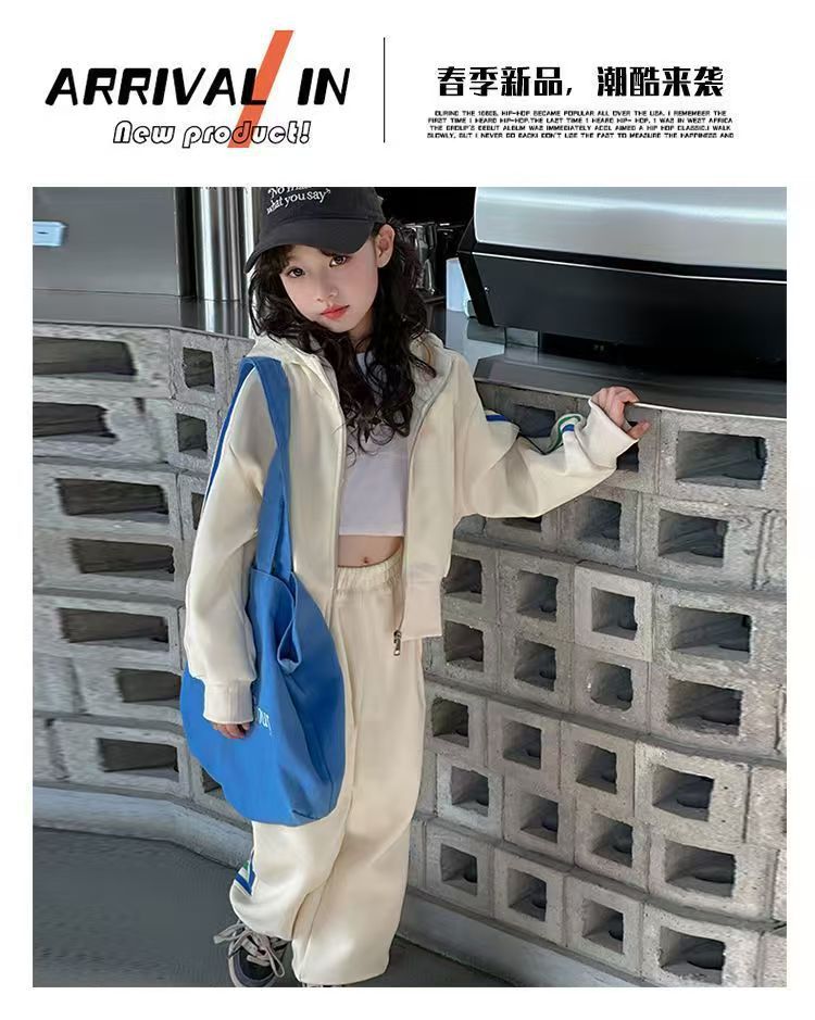 여자 세트 봄 2025 새로운 한국 어린이 외국 스타일 후드 코트 어린 소녀 스포츠 바지 투피스 패션스토어 가기