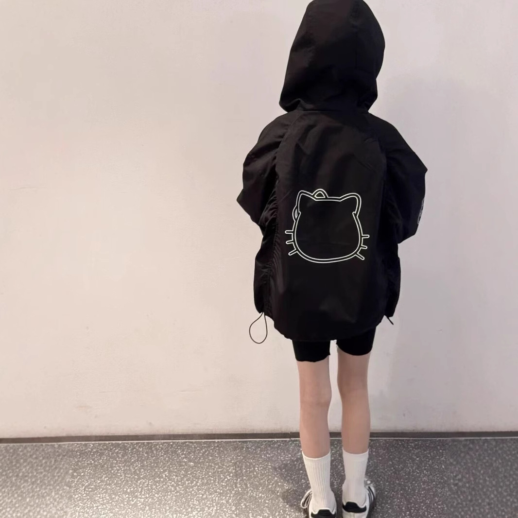 한국 스타일 중대형 어린이 만화 고양이 후드 코트 2025 봄 새로운 어린이 서양식 짧은 코트 트렌디