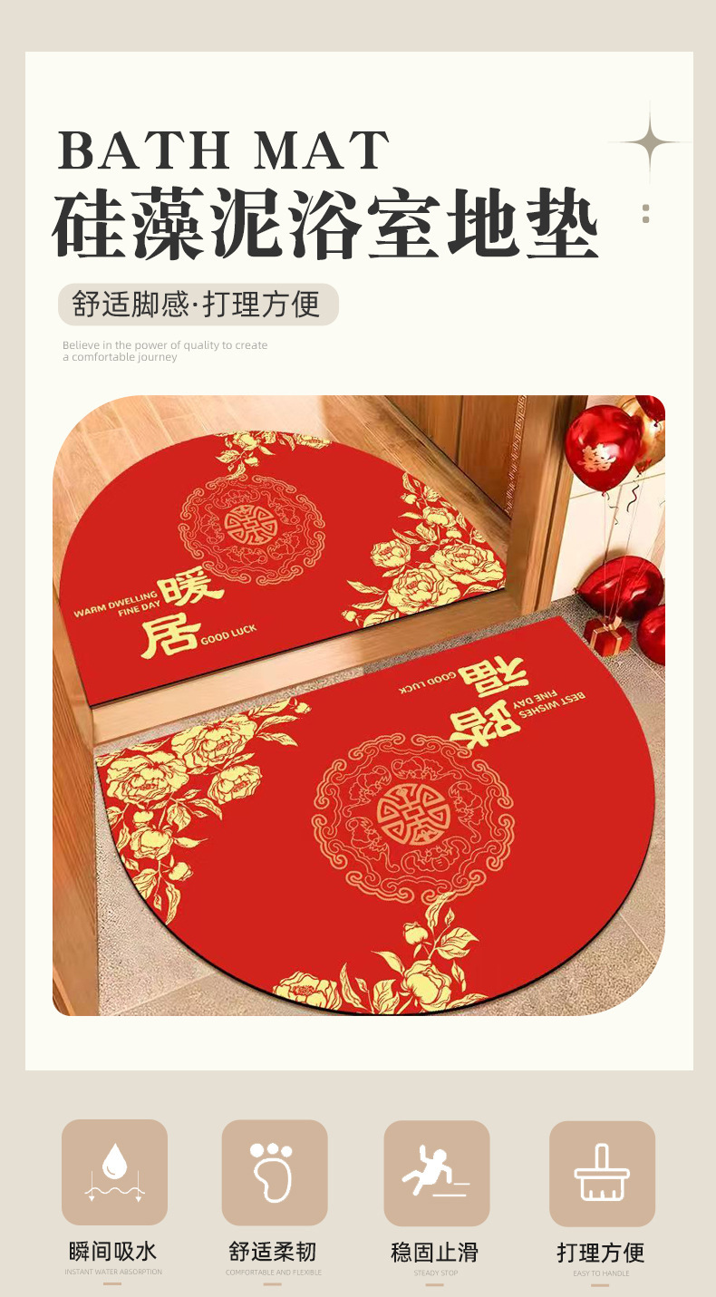 Diatom 진흙 바닥 매트 욕실 물 흡수성 빠른 건조 발 매트 먼지 방지 내마모성 레드 카펫 가정용 좋은 관리 미끄럼 방지 매트
