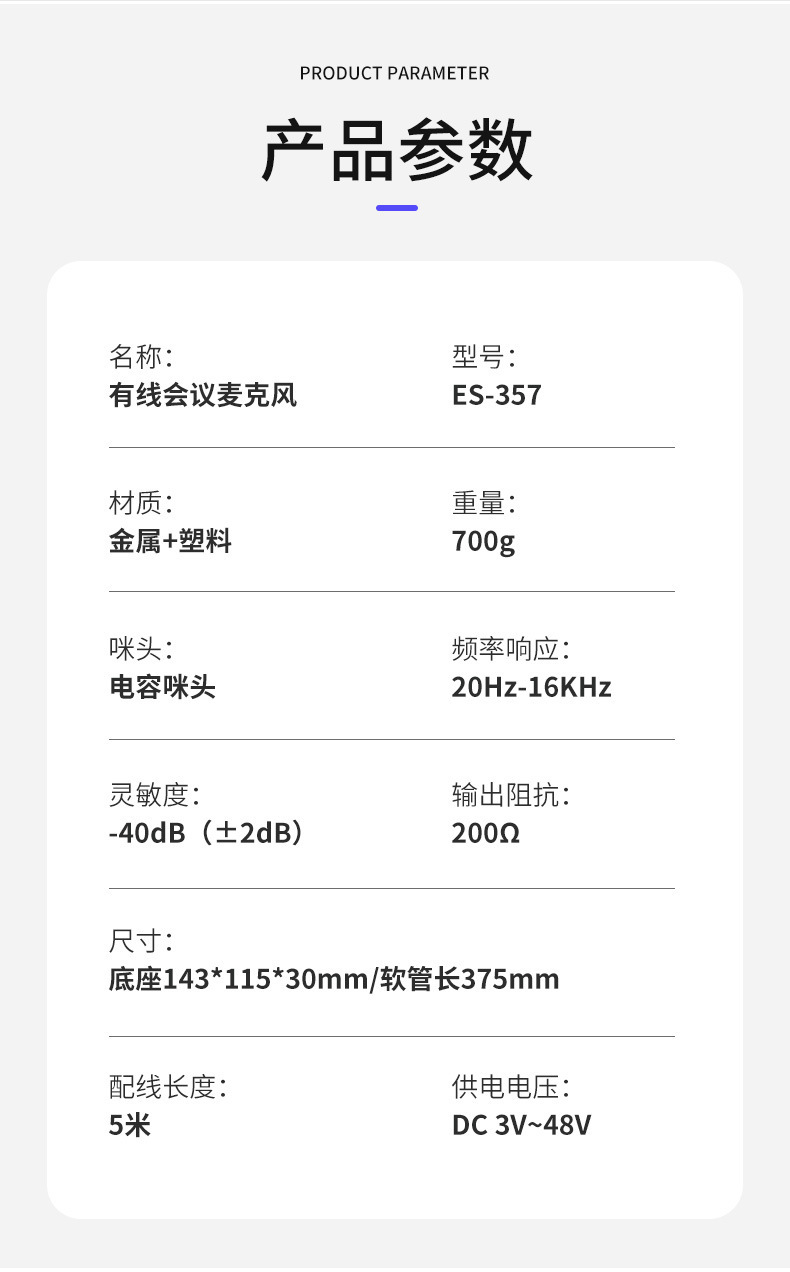 ES-357 EALSEM 아티스템 컨퍼런스 라이브 방송용 구즈넥 게임 마이크, 믹싱 기능이 있는 데스크탑 가정용 컨퍼런스 마이크