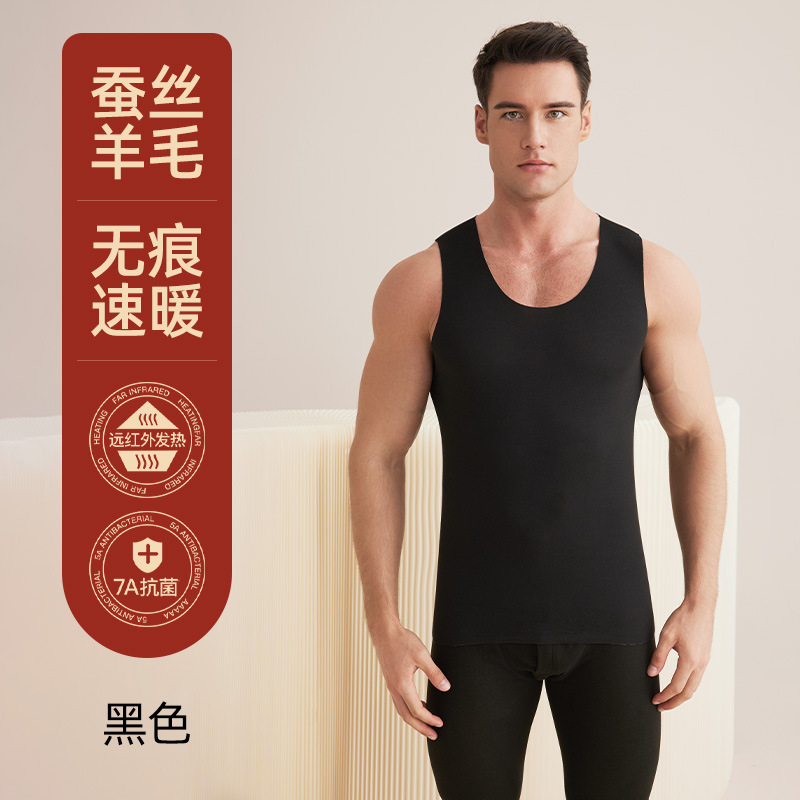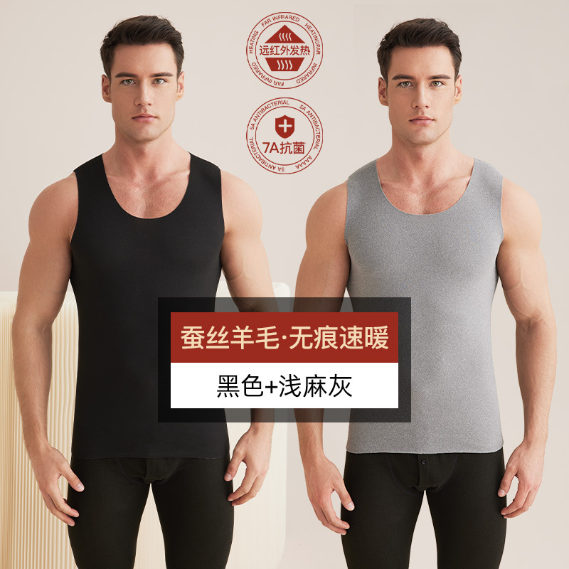 남성용 실크 보온 조끼, 이음매 없는 벨벳 발열 이너웨어, 남성용 이너웨어, 가을 겨울 상의, 대형 사이즈스토어 가기