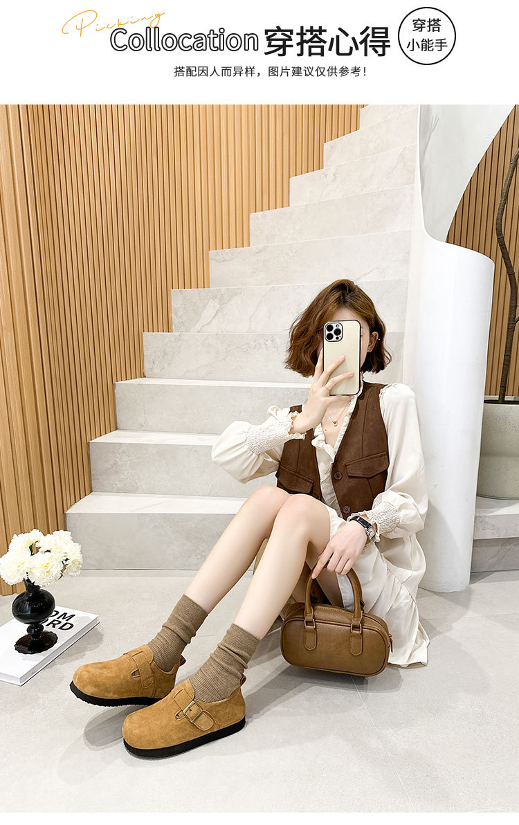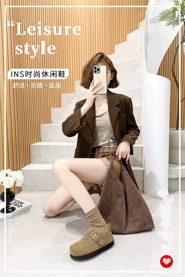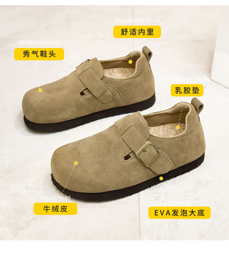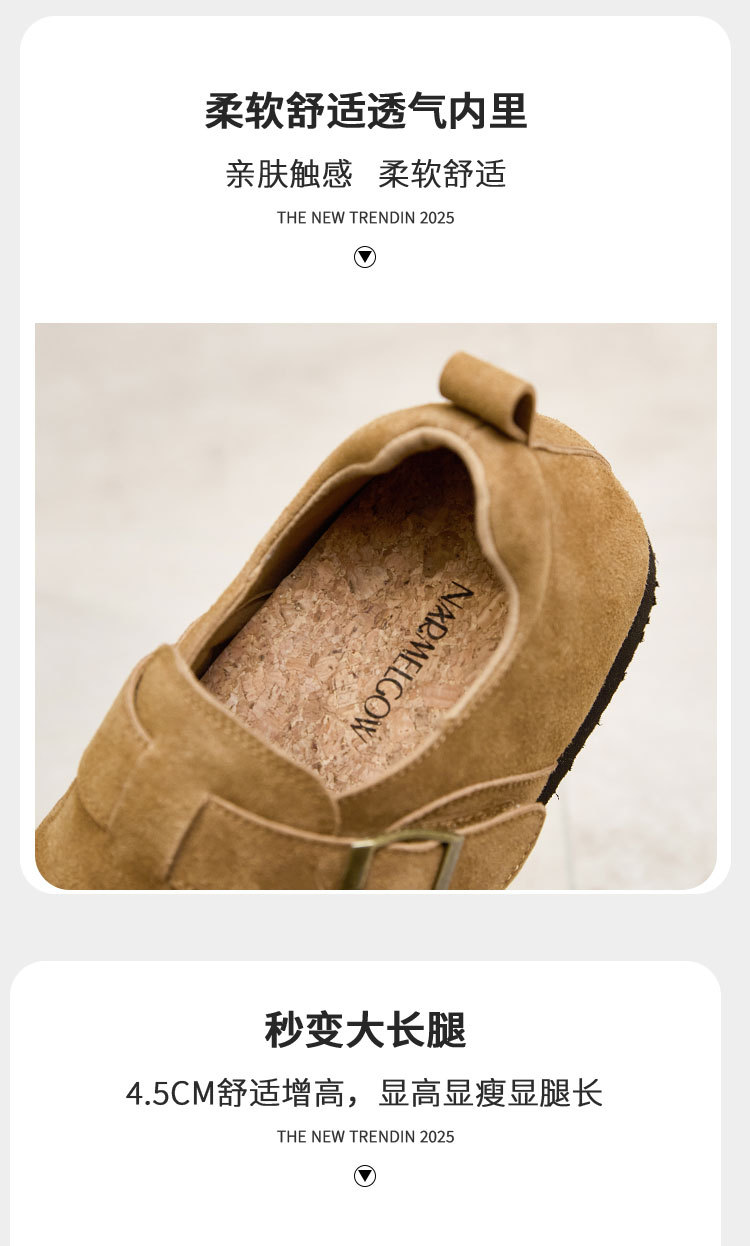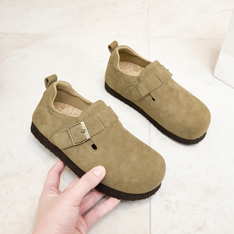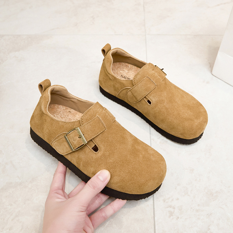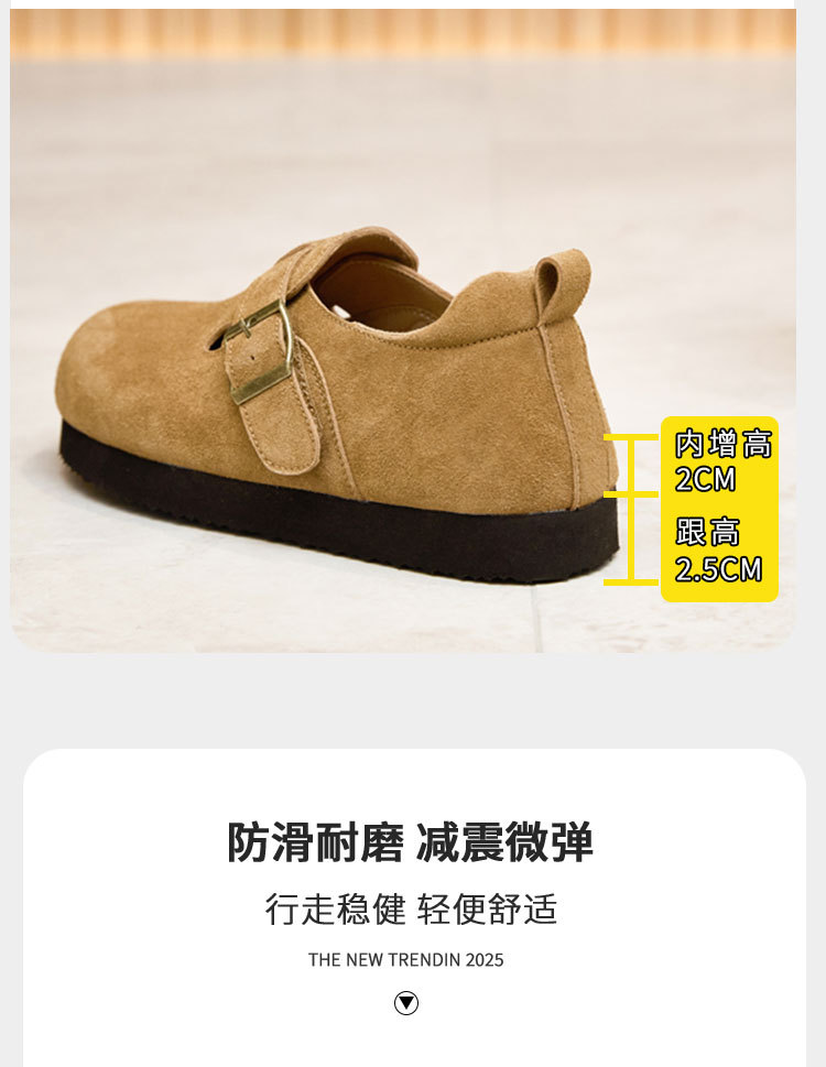 내부 높이가 증가한 천연 가죽 버켄스탁 신발 2025 새로운 복고풍 일체형 버켄스탁 신발 소형 사이즈 3233 부드러운 밑창 콩 신발스토어 가기