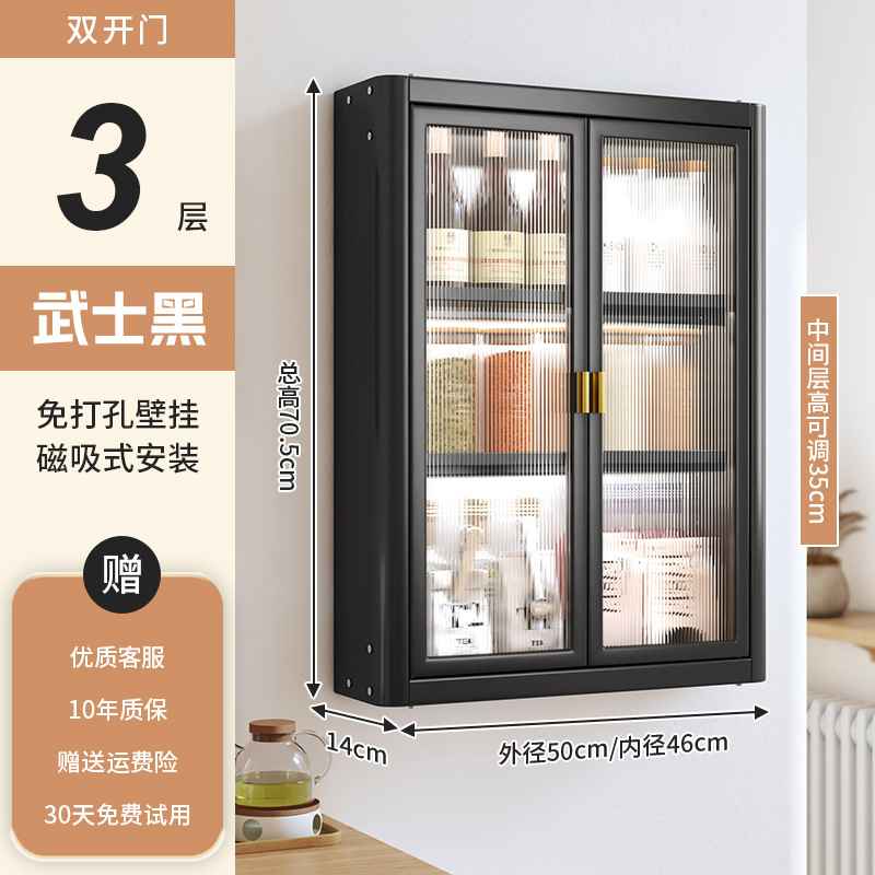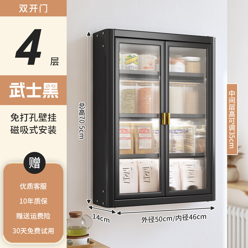 • [사무라이 블랙] 대용량 50CM 펀치 프리 4단 벽걸이 캐비닛(양문형) - 양념 상자 포함