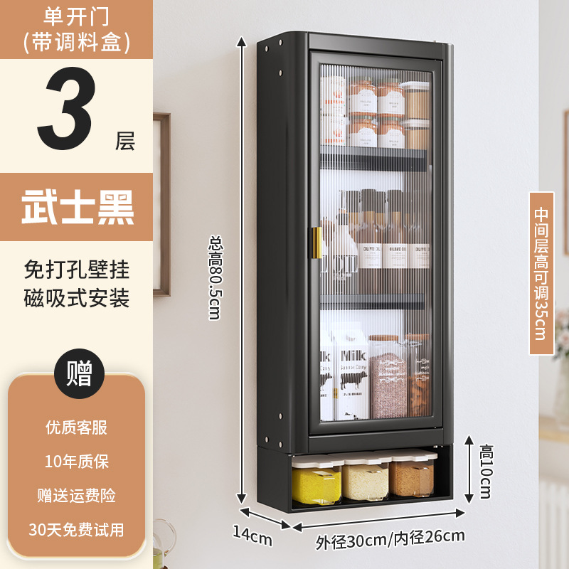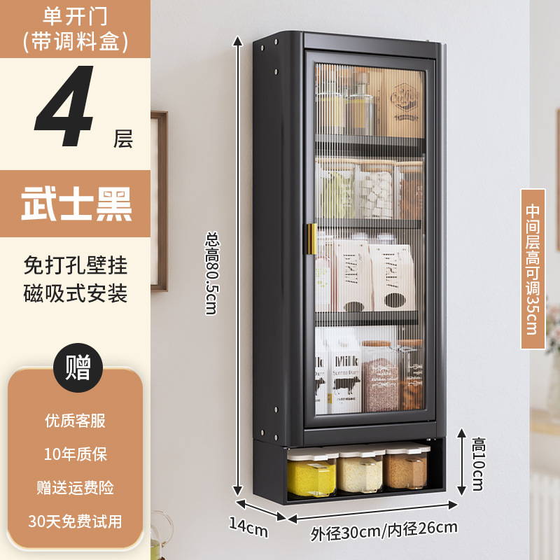• [사무라이 블랙] 대용량 30CM 무펀치 4단 벽걸이수납장(싱글도어) - 양념박스 포함