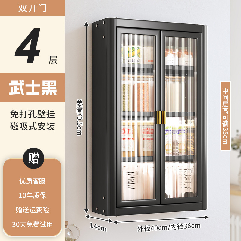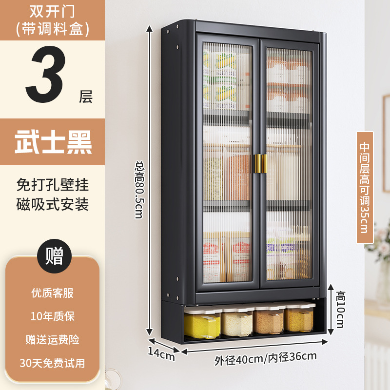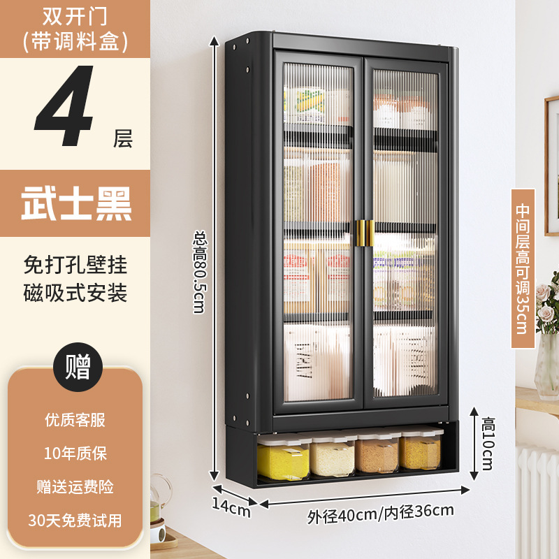 • [사무라이 블랙] 대용량 40CM 펀치 프리 4단 벽걸이 캐비닛(양문형) - 양념 상자 포함