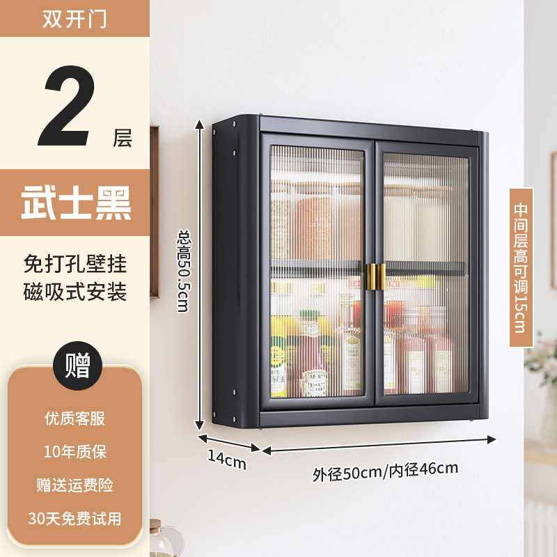 • [사무라이 블랙] 대용량 50CM 펀치 프리 2단 벽걸이 캐비닛(양문형) - 양념 상자 포함
