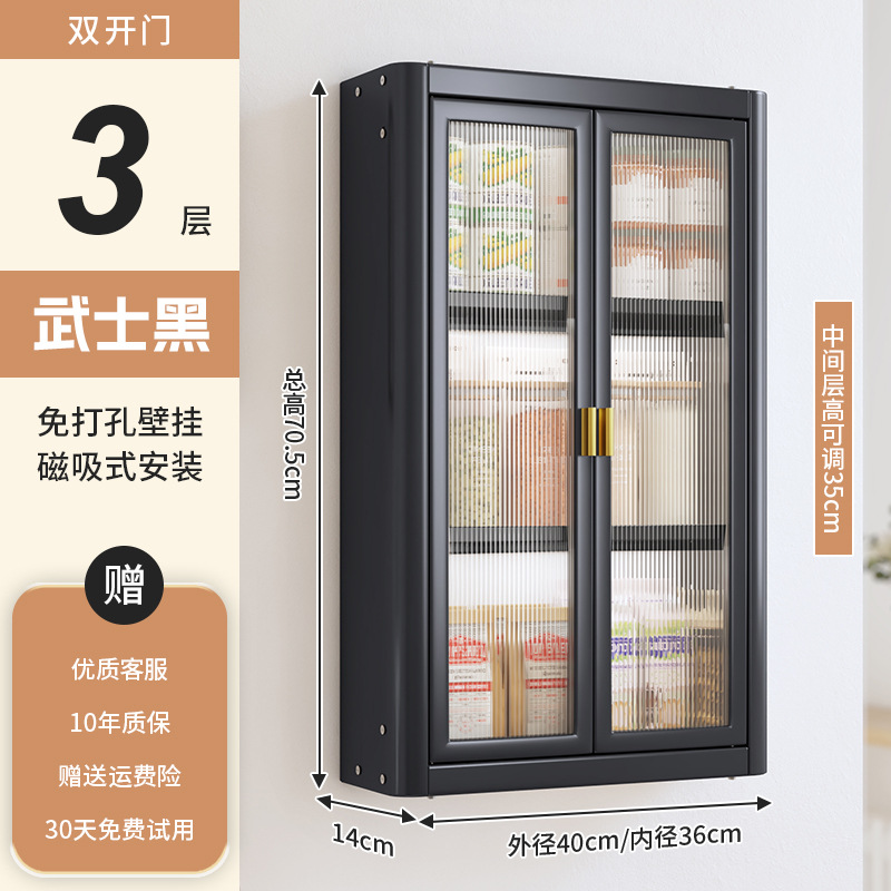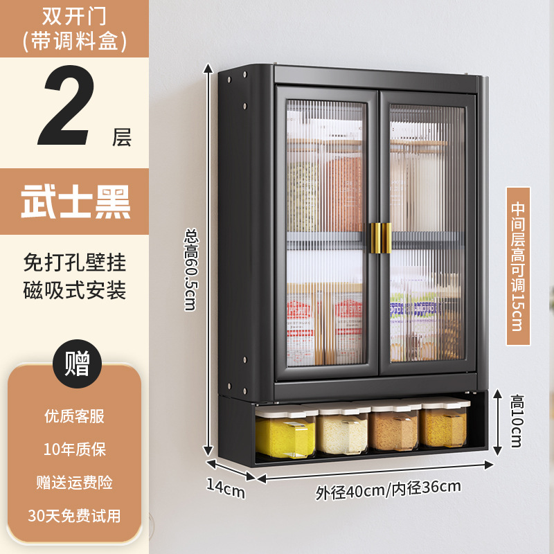 • [사무라이 블랙] 대용량 40CM 펀치 프리 2단 벽걸이 캐비닛(양문형) - 양념 상자 포함