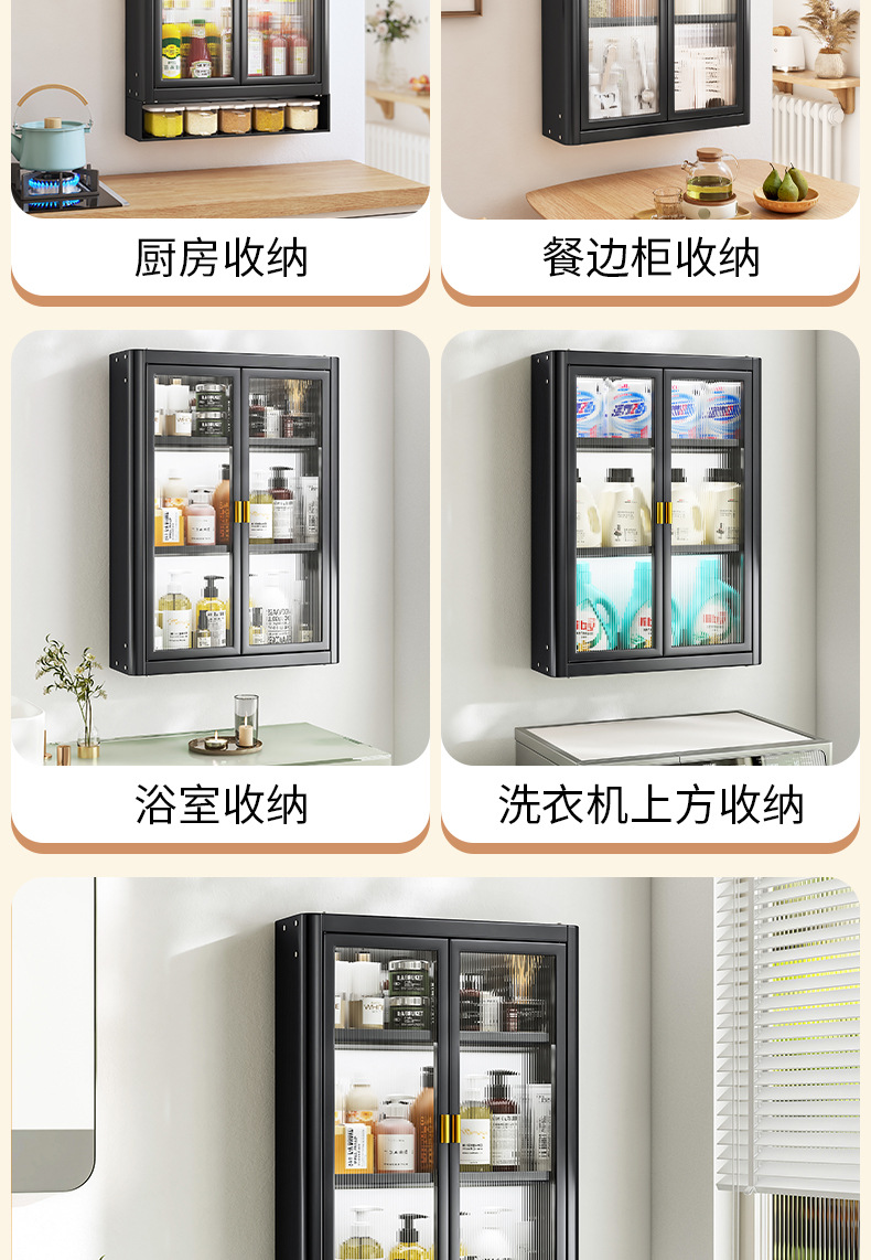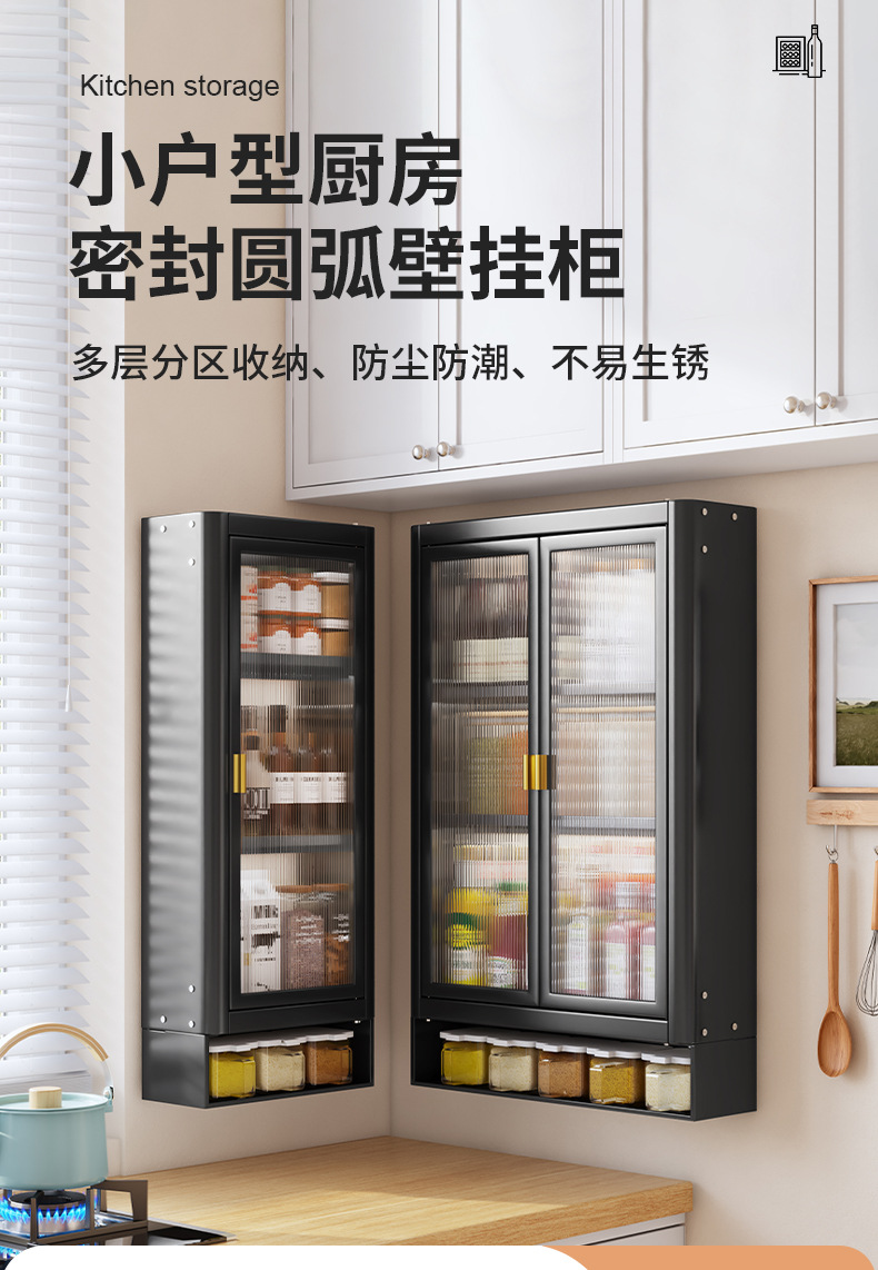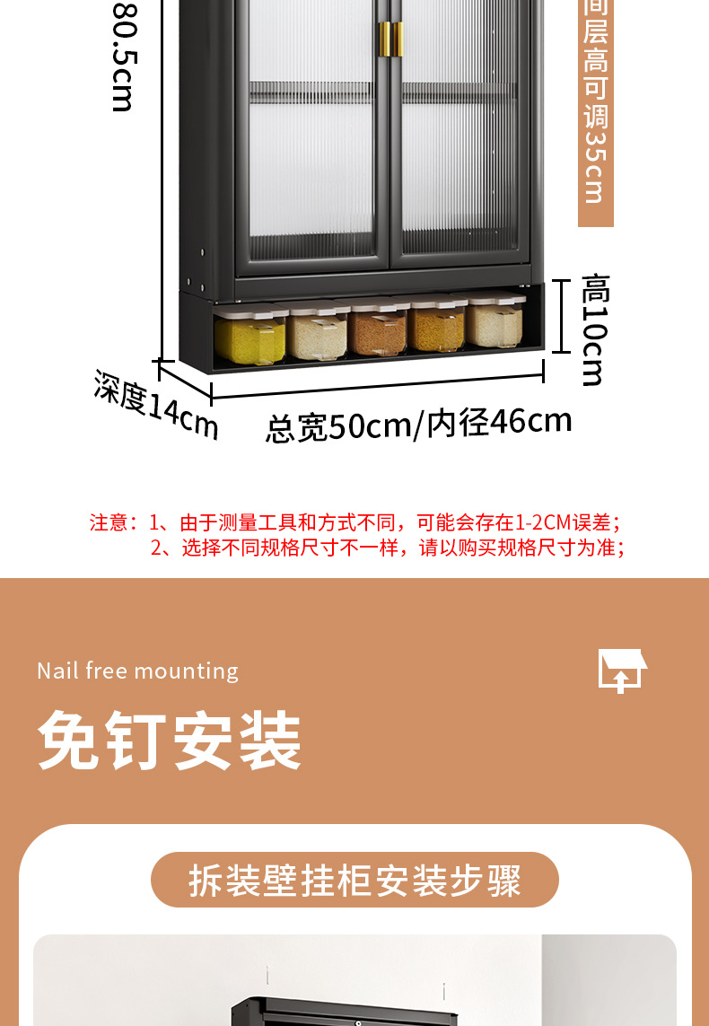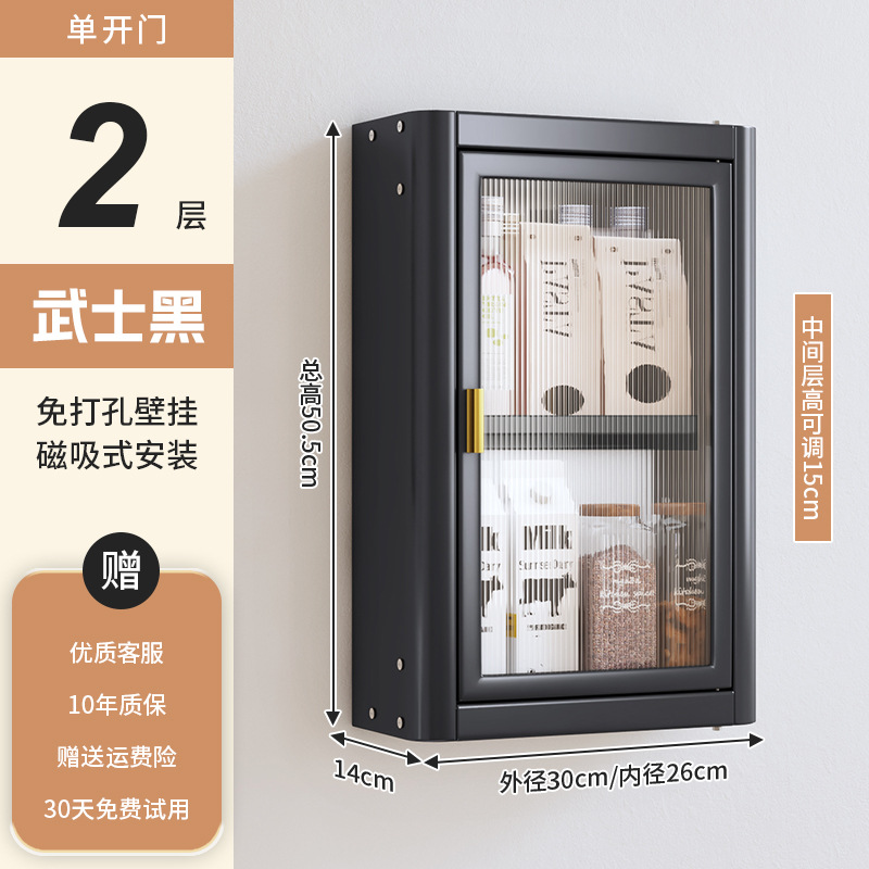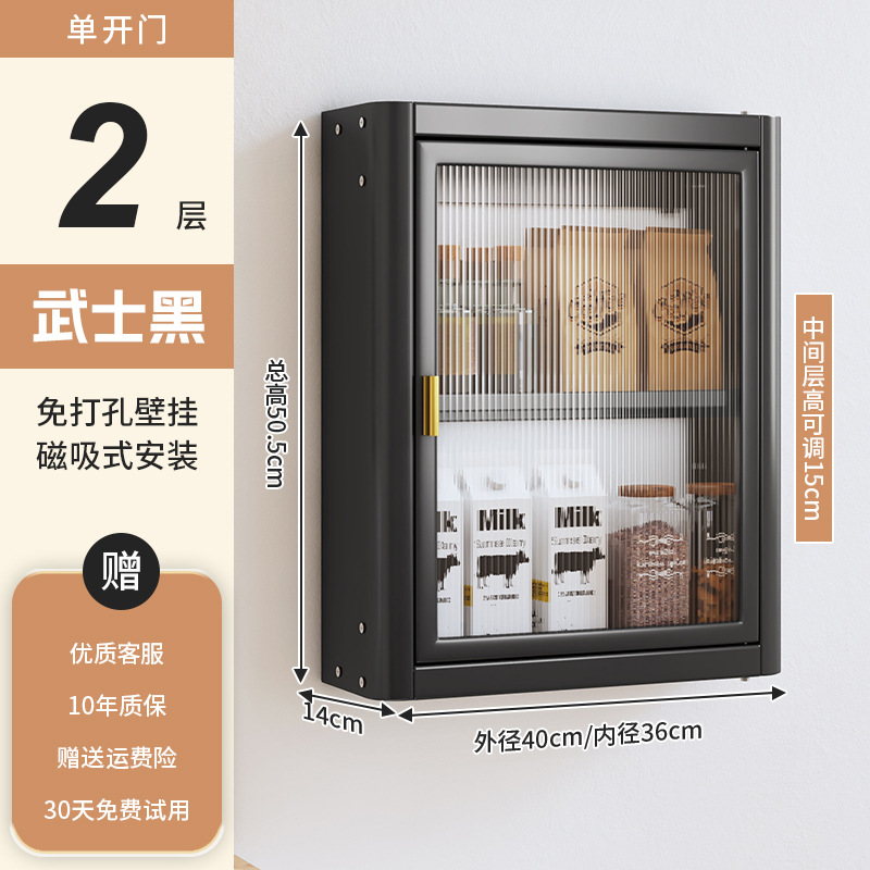 • [사무라이 블랙] 대용량 40CM 펀치 프리 2단 벽걸이 캐비닛(단일 도어) - 양념 상자 포함