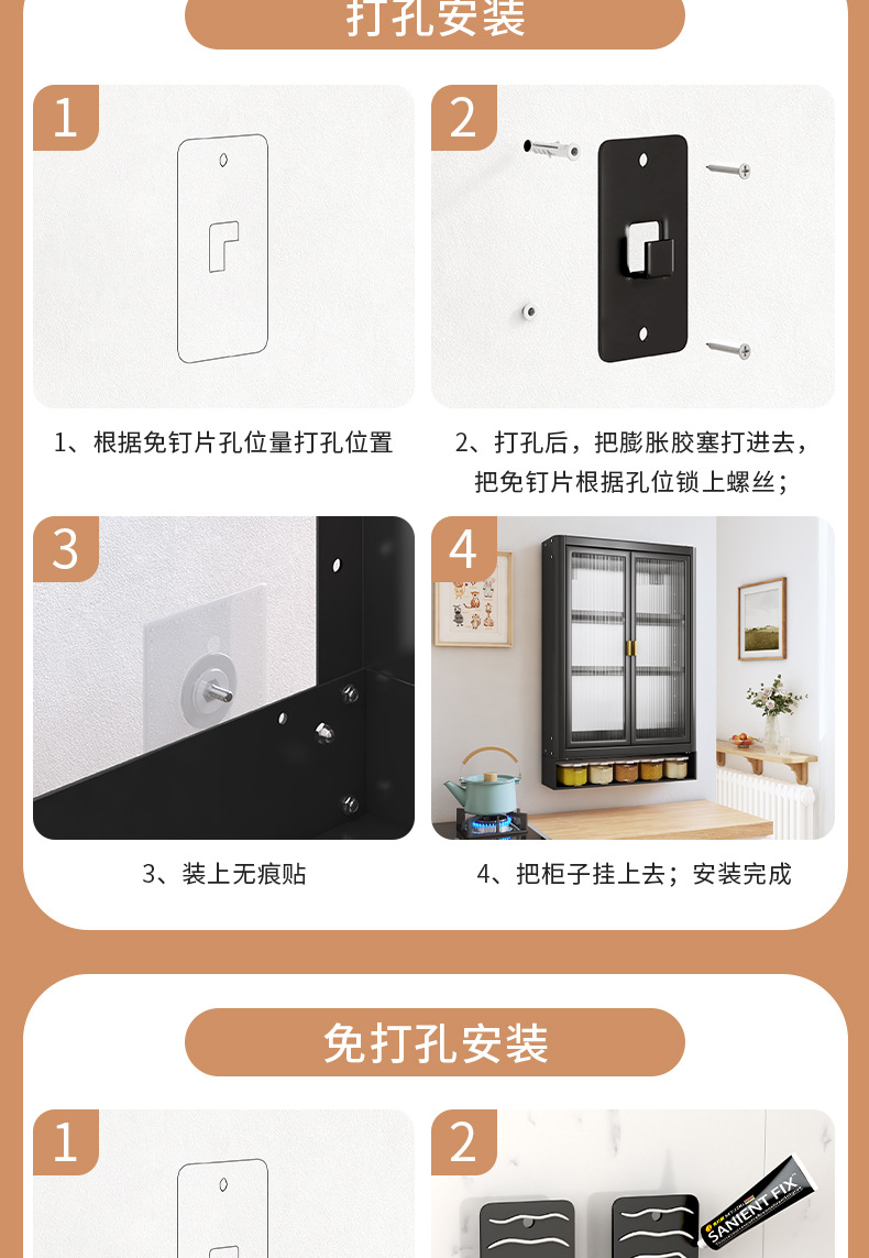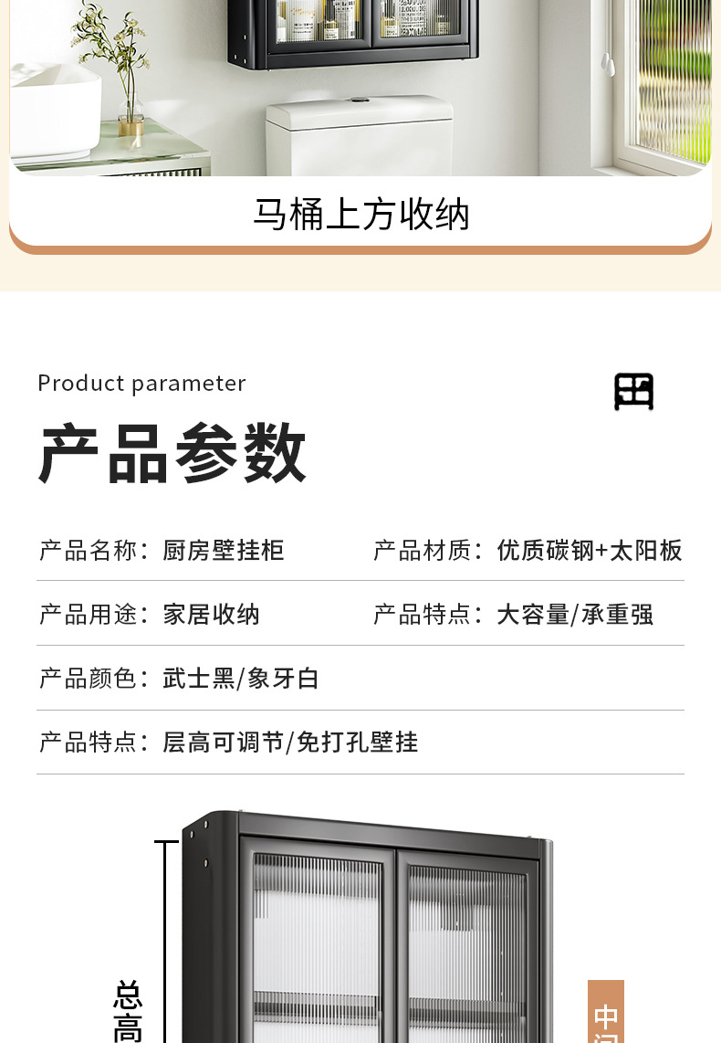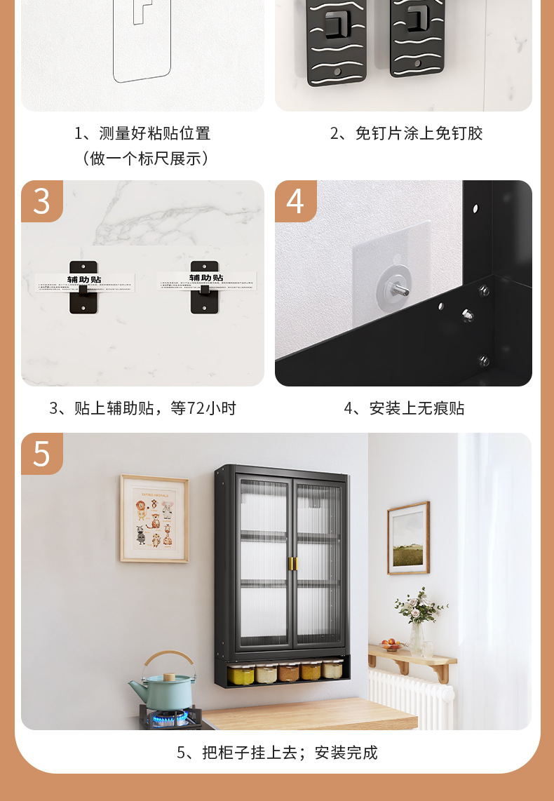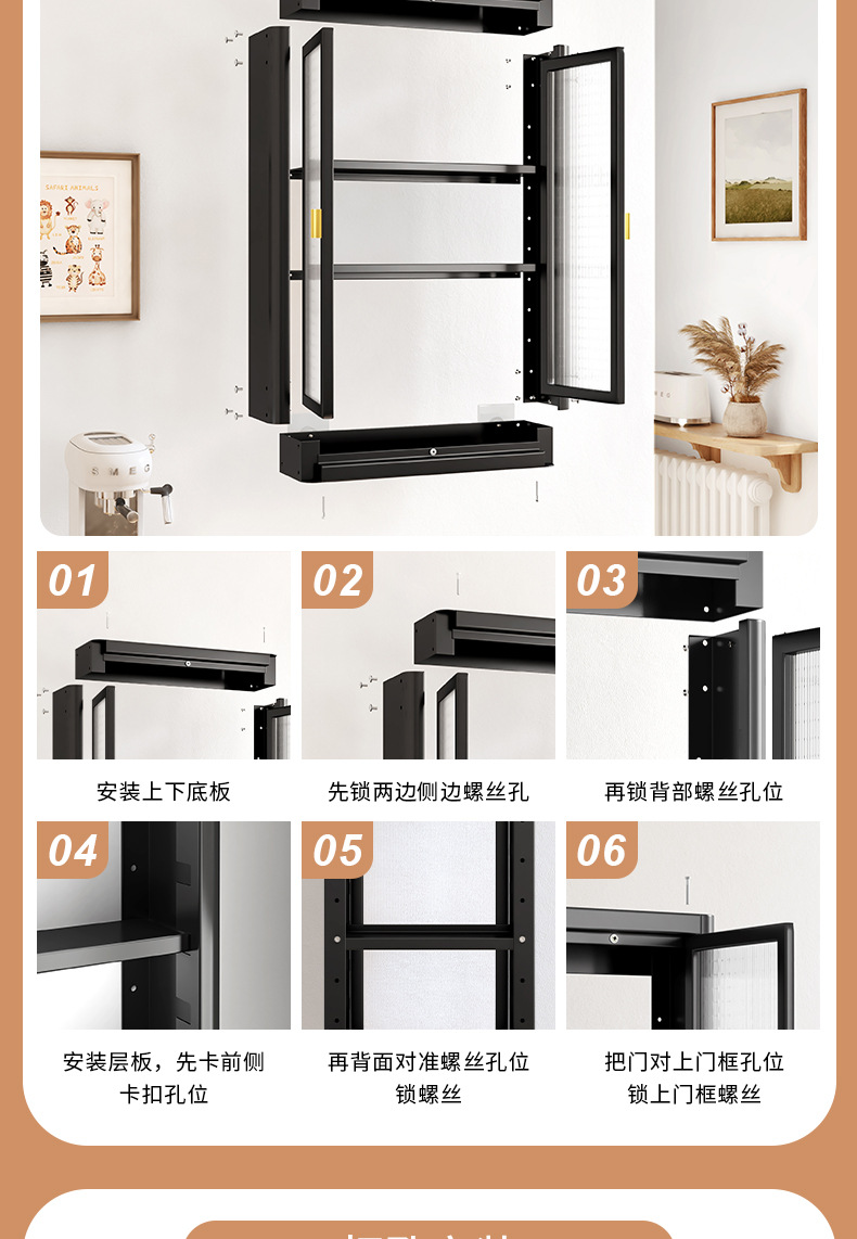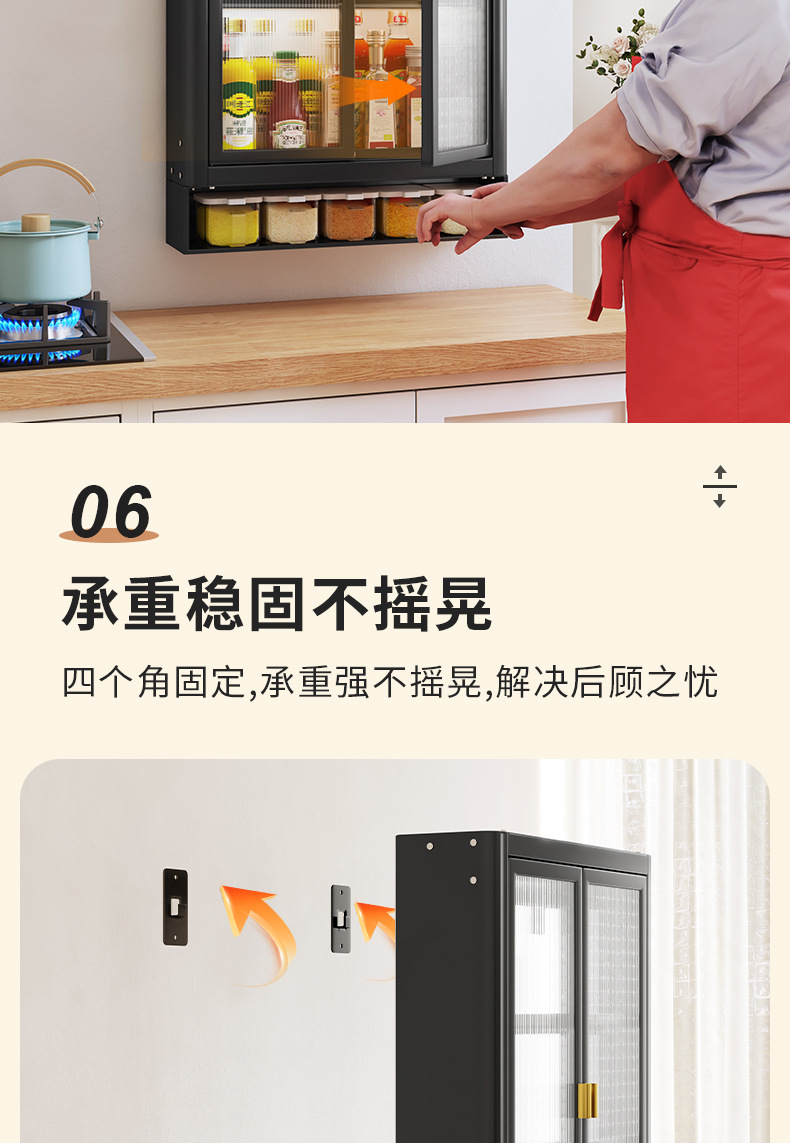 • [사무라이 블랙] 대용량 40CM 펀치 프리 2단 벽걸이 캐비닛(단일 도어) - 양념 상자 포함