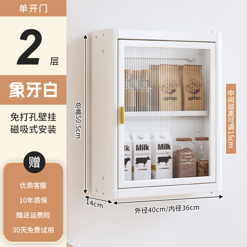 • [아이보리화이트] 대용량 40CM 무펀치 2단 벽걸이수납장(싱글도어) - 양념박스 포함