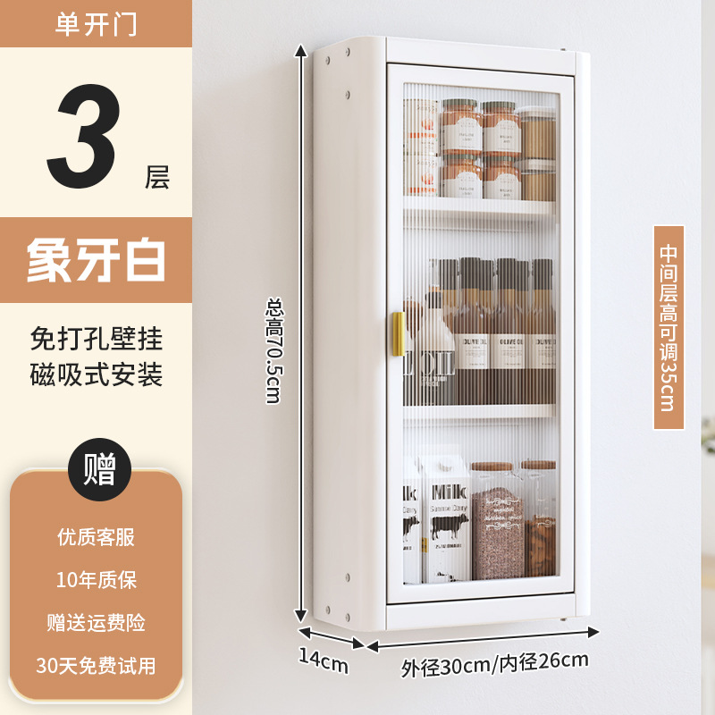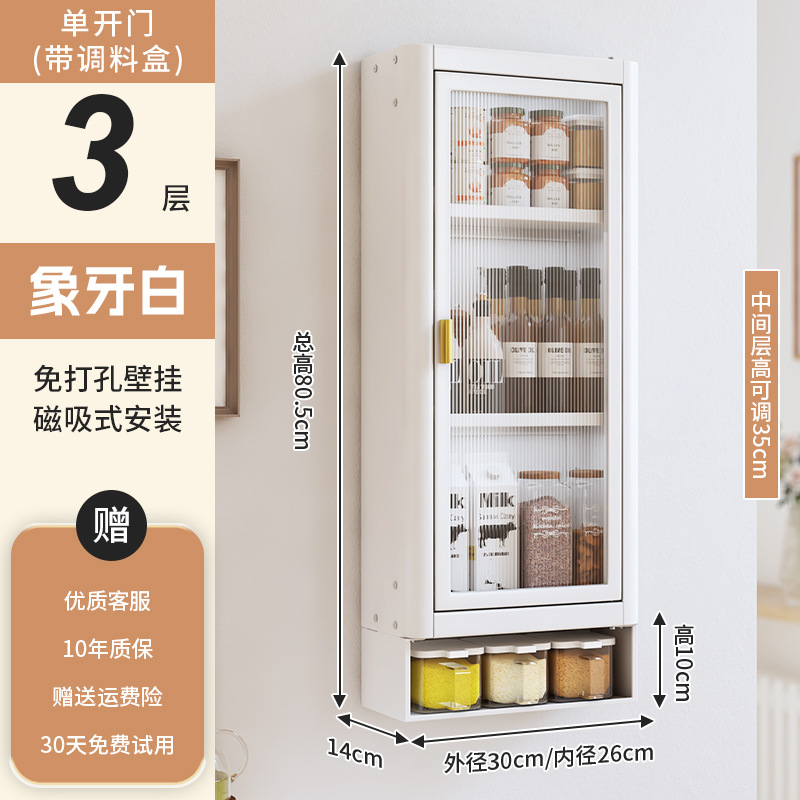 • [아이보리화이트] 대용량 30CM 무펀치 3단 벽걸이수납장(싱글도어) - 양념박스 포함