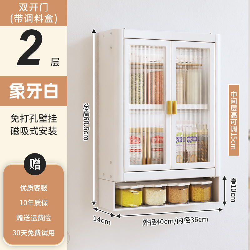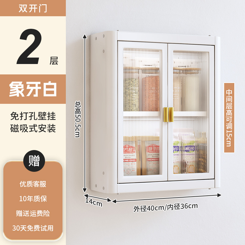 • [아이보리화이트] 대용량 40CM 무펀치 2단 벽걸이수납장(양문) - 양념박스 포함