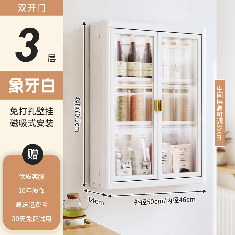 • [아이보리화이트] 대용량 50CM 무펀치 3단 벽걸이수납장(양문) - 양념박스 포함