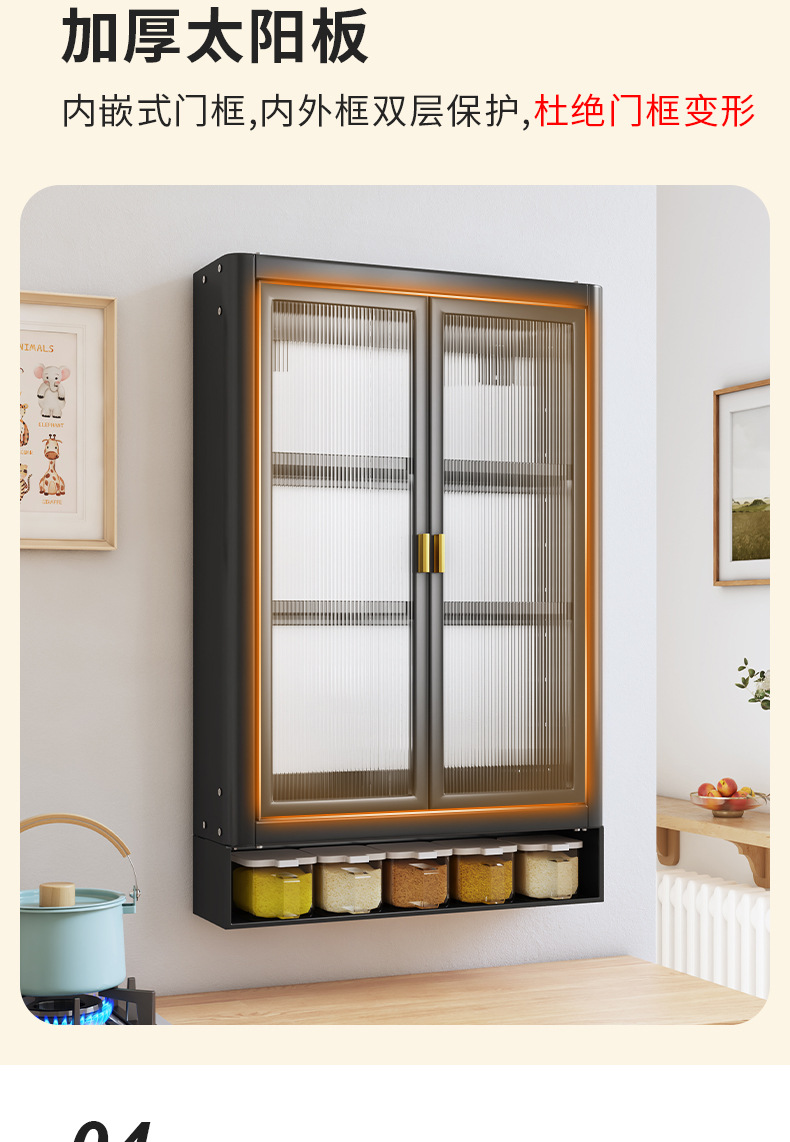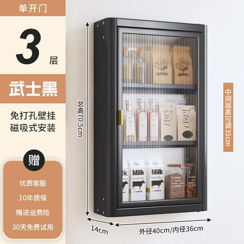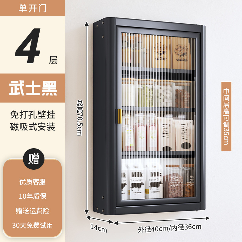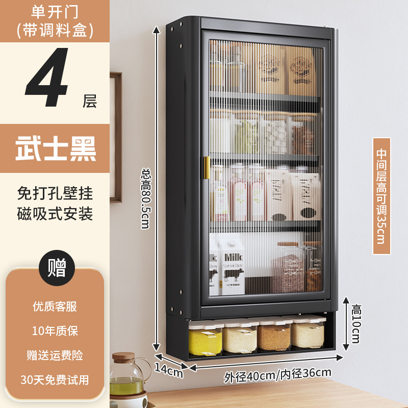 • [사무라이 블랙] 대용량 40CM 펀치 프리 4단 벽걸이 캐비닛(단문형) - 양념 상자 포함