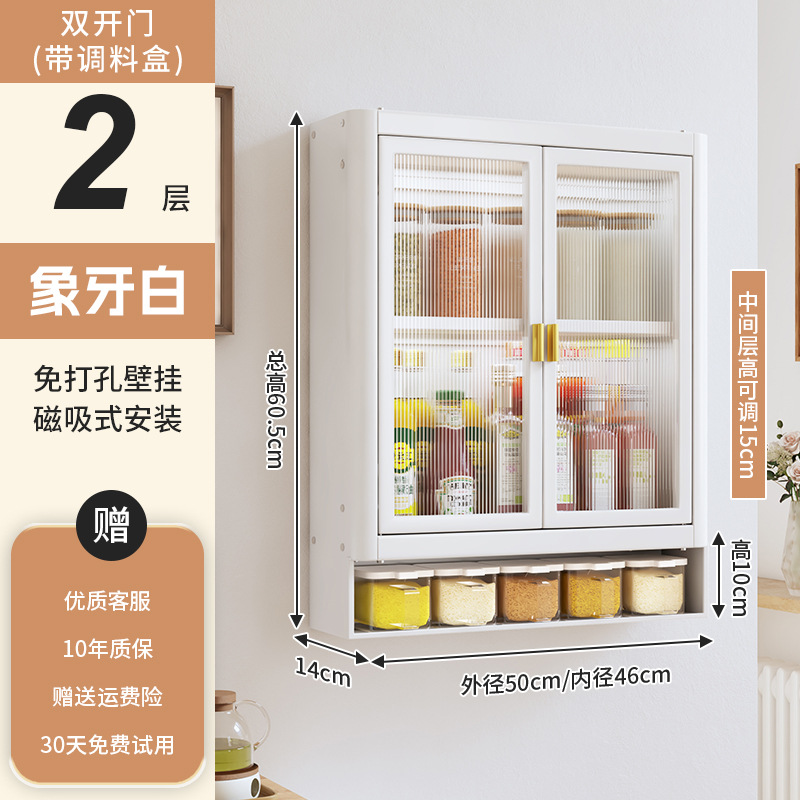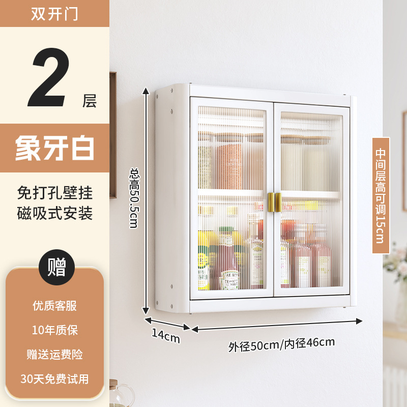 • [아이보리화이트] 대용량 50CM 무펀치 2단 벽걸이수납장(양문) - 양념박스 포함