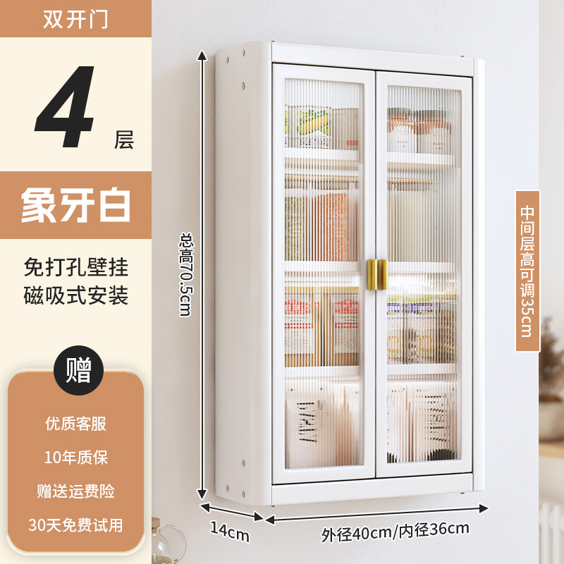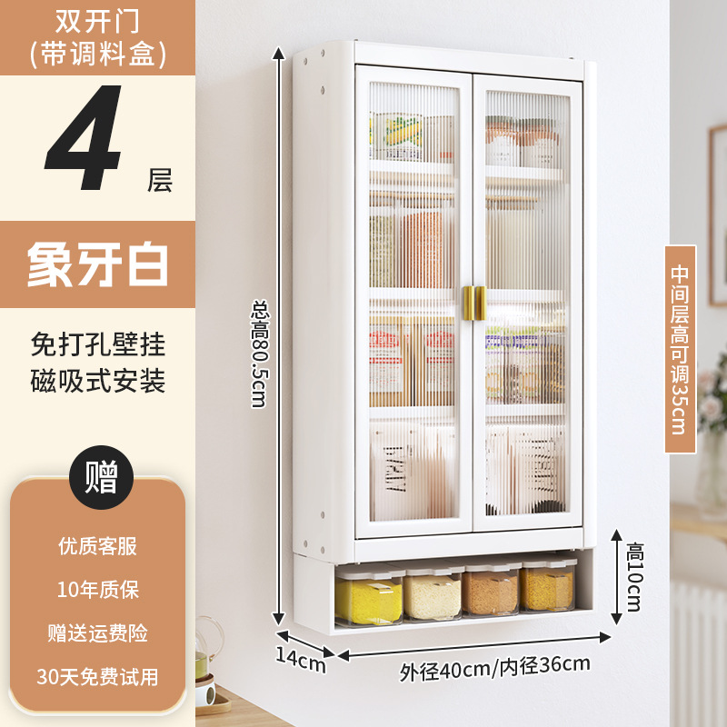 • [아이보리화이트] 대용량 40CM 무펀치 4단 벽걸이수납장(양문) - 양념박스 포함
