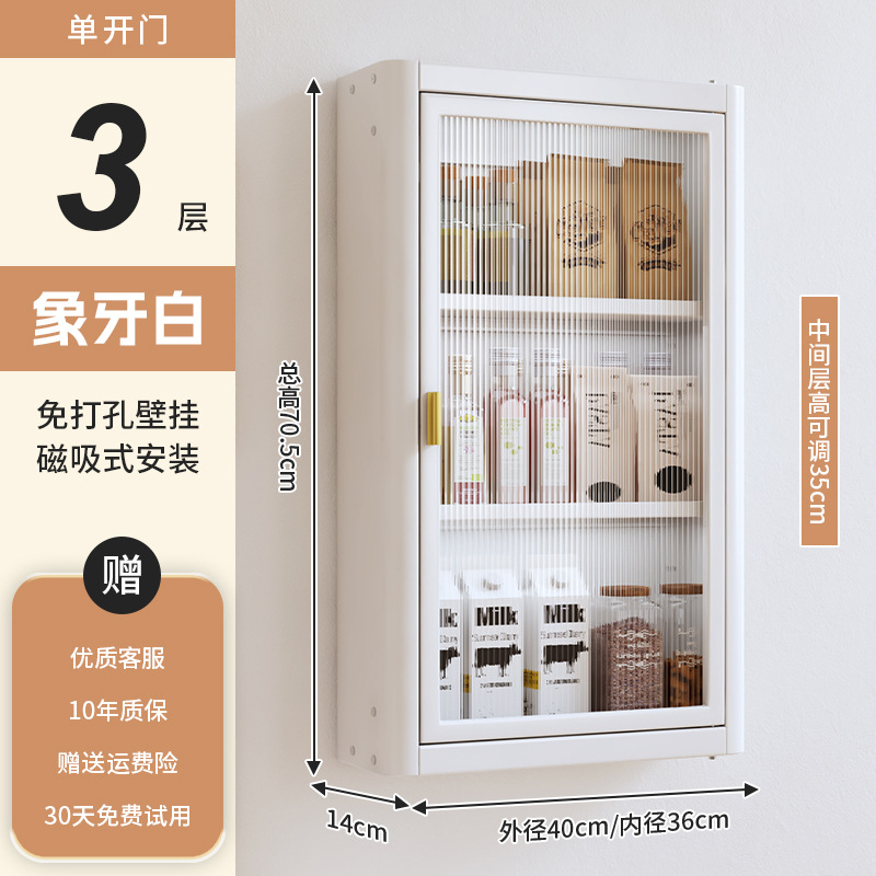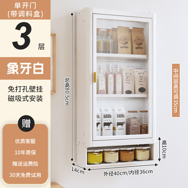 • [아이보리화이트] 대용량 40CM 무펀치 3단 벽걸이수납장(싱글도어) - 양념박스 포함